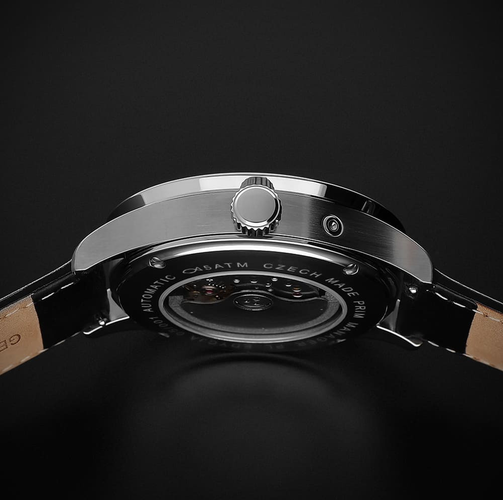 • Funkce a popis:Čas, datum, den v týdnu a měsíce v roce - vše v češtině, mechanický strojek s automatickým nátahem Japan MIYOTA 9122 (26 kamenových uložení) = rezerva chodu až 40 hodin, polokmity setrvačky 28.800/h (3 Hz) = přesnost chodu (diference) 2 - 4 vteřin denně, automatický nátah (hodinky se natahují pohybem ruky) + ruční nátah (hodinky lze natáhnout/dotáhnout dle potřeby i ručně korunkou), zapínání - trnová spona, průhledné zadní víčko pro náhled na strojek