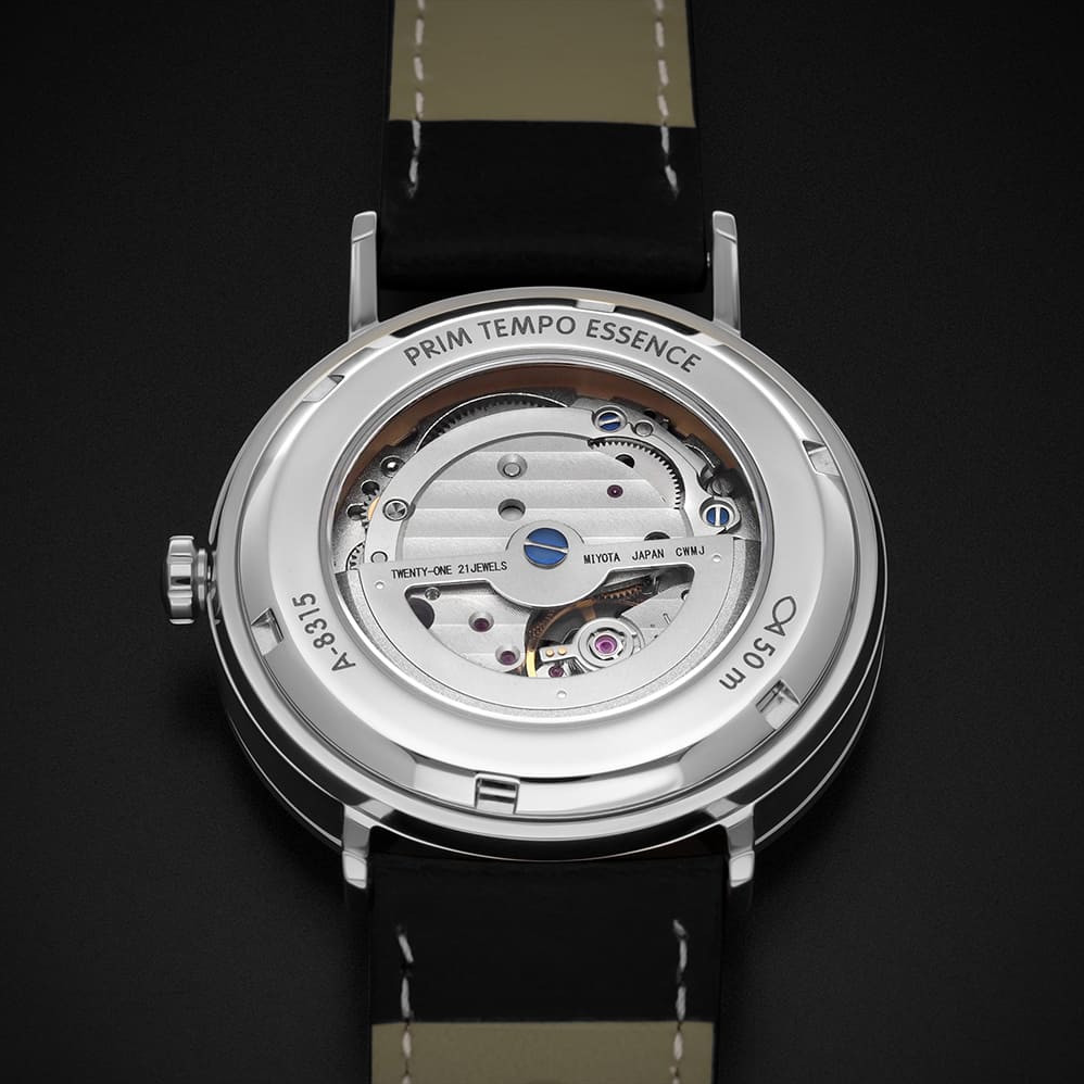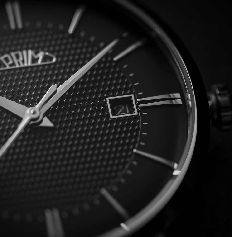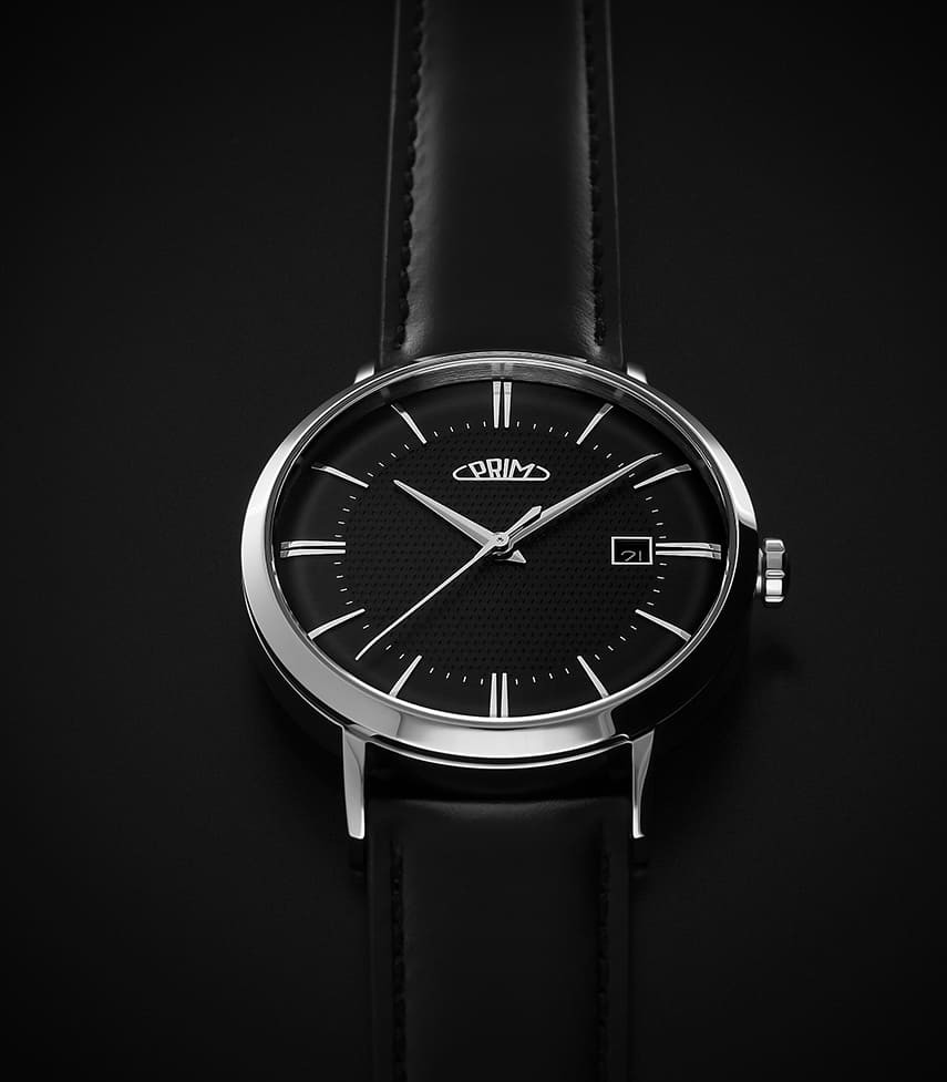 PRIM Tempo Essence - A W01P.13261.A jsou elegantní automatické hodinky, které pracují s inspirací šedesátými lety minulého století a přenášejí ji do velmi čistého současného provedení. Tento model osloví zákazníka, který hledá jemnější mechanické hodinky s minimalistickým vzhledem, vysokou nositelností a kultivovaným designem bez zbytečné okázalosti. V tomto provedení hodinky spojují stříbrné pouzdro, černý kožený řemínek a číselník v kombinaci černého a stříbrného tónu. Výsledný ...