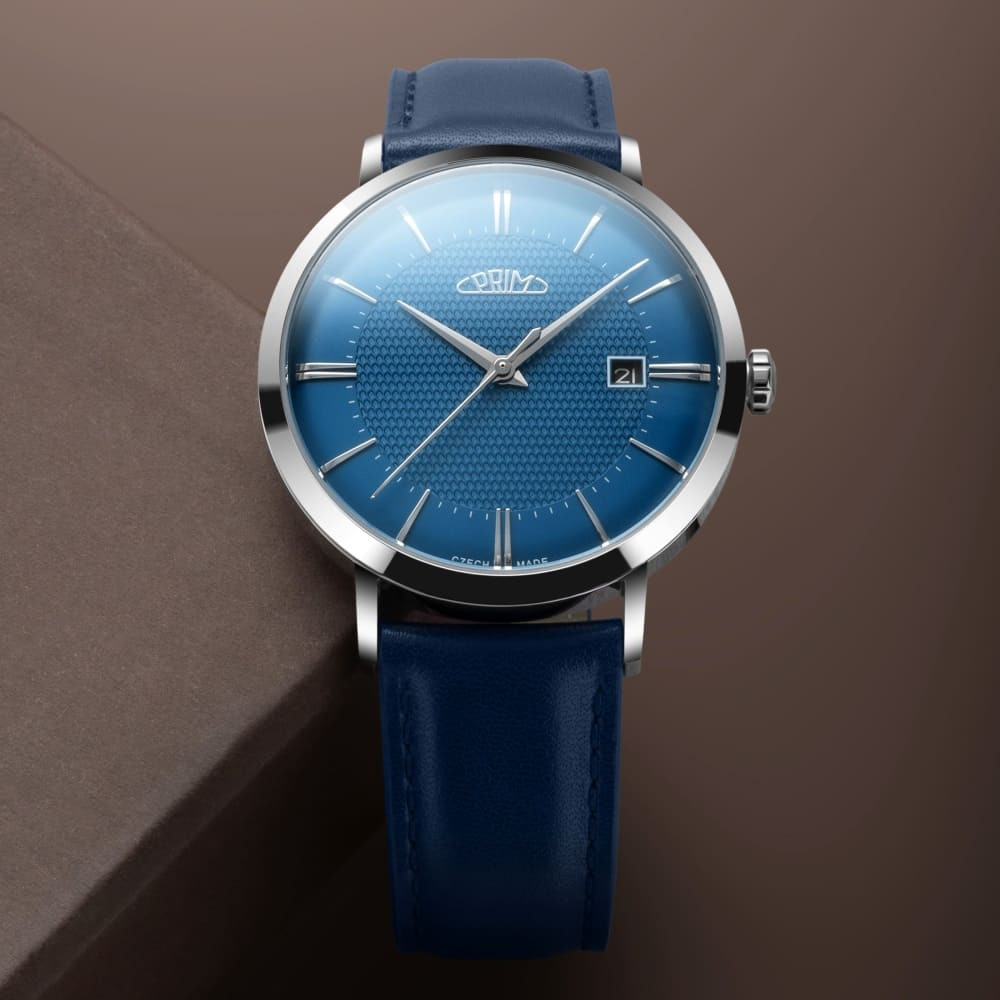 PRIM Tempo Essence - F W01P.13261.F jsou automatické hodinky, které z celé řady působí nejsvěžeji a nejdynamičtěji. Tato reference spojuje modrostříbrný číselník, stříbrné pouzdro a modrý kožený řemínek, takže na zápěstí vytváří velmi čistý, lehce sportovně elegantní dojem. Přesto si model zachovává jemnost, noblesu a charakter inspirovaný šedesátými lety minulého století. PRIM zde vytvořil hodinky, které mají lehkou retro atmosféru, ale současně působí velmi současně a přirozeně. ...