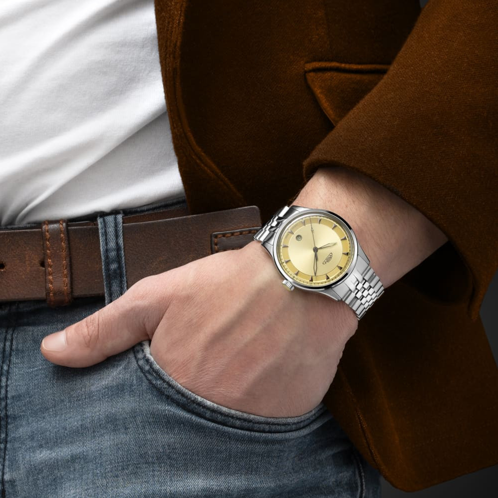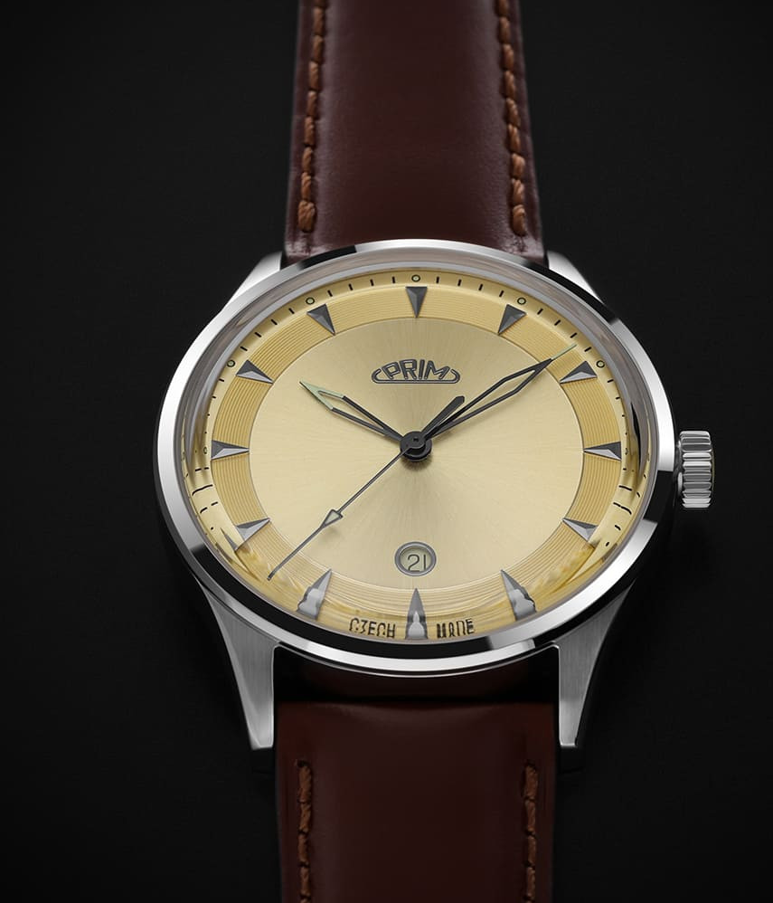 PRIM Legatus 59 - A W01P.13265.A jsou pánské automatické hodinky, které spojují společenský styl s každodenní praktičností. Kulaté pouzdro ve stříbrném tónu působí čistě a nadčasově, takže se snadno kombinuje s oblekem i s košilí bez kravaty. Číselník je řešen s indexy a jasnou minutovou i hodinovou stupnicí, takže čas přečtete rychle a bez zbytečného hledání. Díky elegantnímu designu je to model, který nepůsobí okázale, ale okamžitě prozradí, že máte rádi poctivé mechanické hodinky.