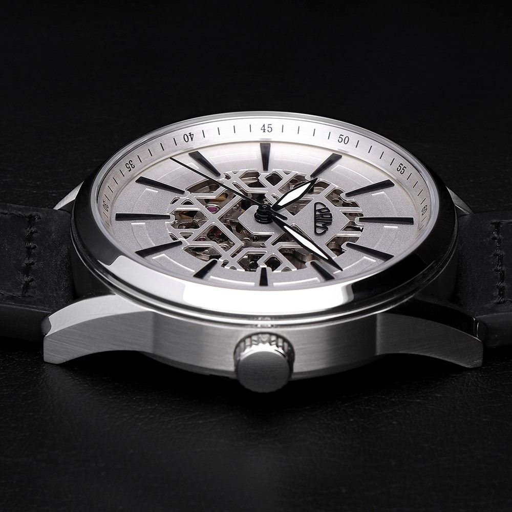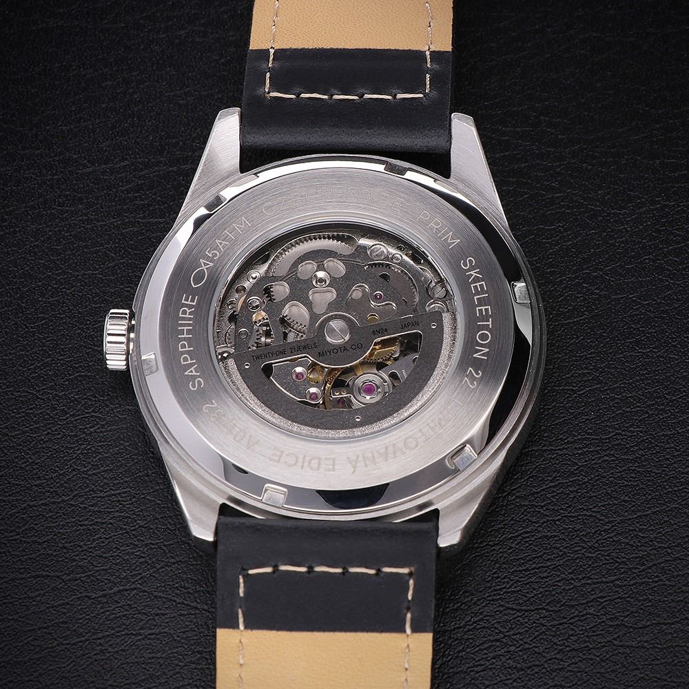 • Funkce a popis:Čas, strojek Japan Miyota 8N24 (21 kamenových uložení) = rezerva chodu až 42 hodin, polokmity setrvačky 21.600/h (3 Hz) = přesnost chodu (diference) 3 - 6 vteřin denně, automatický nátah (hodinky se natahují pohybem ruky), ručičky jsou opatřeny tenkou vrstvou luminiscenčního materiálu (materiál, který po krátkém nasvícení dlouhou dobu svítí, což je praktické za šera a v noci)