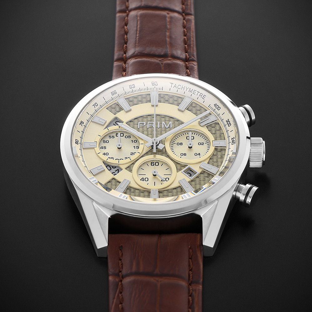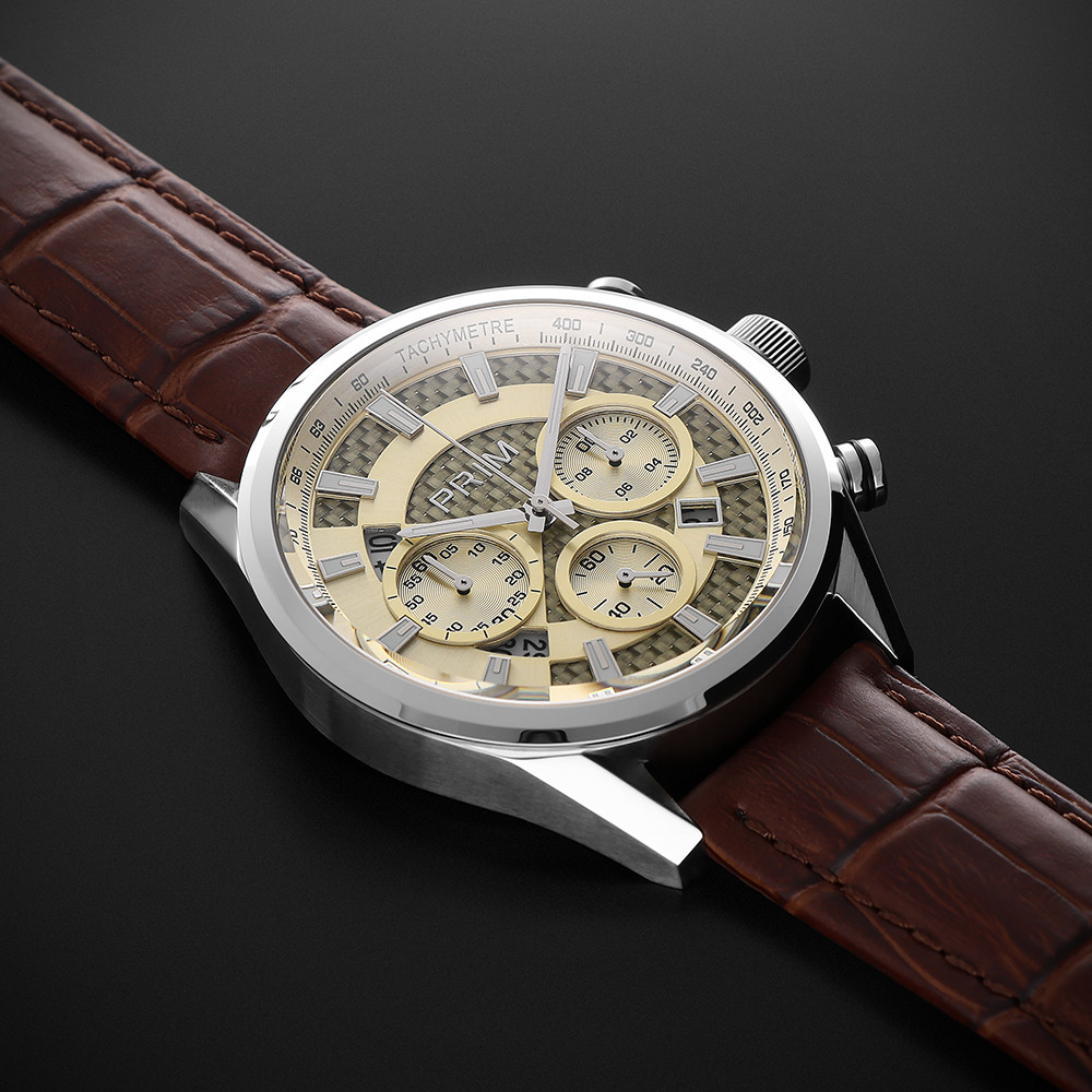 Populární model PRIM Master 25 s leštěným pouzdrem a moderním číselníkem s chronografem oživí a zvýrazní image svého majitele. PRIM Master 25 – dokonalá rovnováha mezi sportovní dynamikou a nadčasovou elegancí, nyní s uhlíkového vlákna (karbonu) pro ještě exkluzivnější vzhled. Hodinky, které podtrhnou váš styl a zaujmou na první pohled. ...