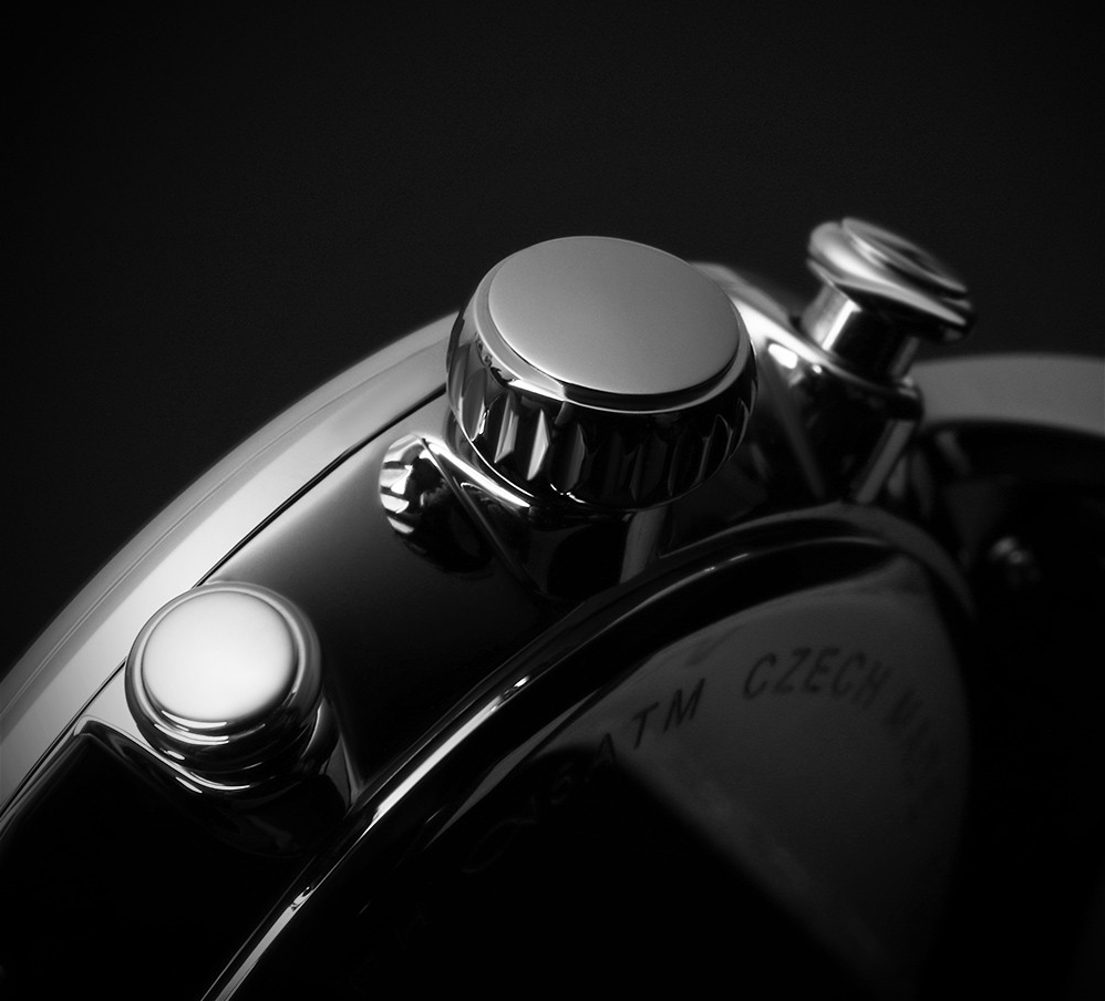 Obsluha základních quartzových hodinek osazených max. chronografem bývá ve většině případech stejná jako obsluha automatů. Je-li šroubovací korunka (obr. 1.), v první fázi ji musíme směrem k sobě vyšroubovat až nám "skočí" do první polohy, ve které můžeme s korunkou otáčet na libovolnou starnu a nic se neděje. Až když povytáhneme korunku do druhé polohy, seřizujeme datum rychloposuvem. A znovupovytažením korunky do polohy nejzažší si seřizujeme ručičky.