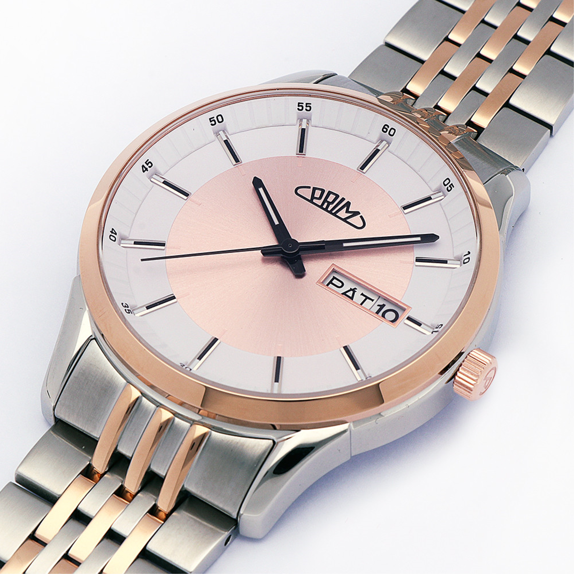Elegantní hodinky PRIM Klasik 21 CZ se safírovým sklem. Designéři nově navrhli číselník a konstruktéři pozměnili model a přidali šroubovací korunku, která zajistí voděodolnost 10 ATM. Hodinky zaujmou každého stylového muže. Samozřejmostí je u modelu ukazatel dnů s českými názvy.