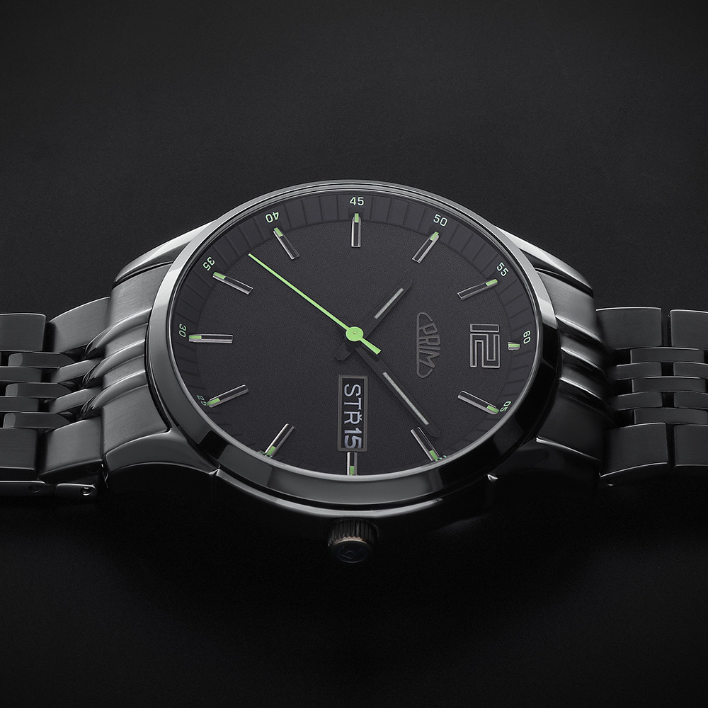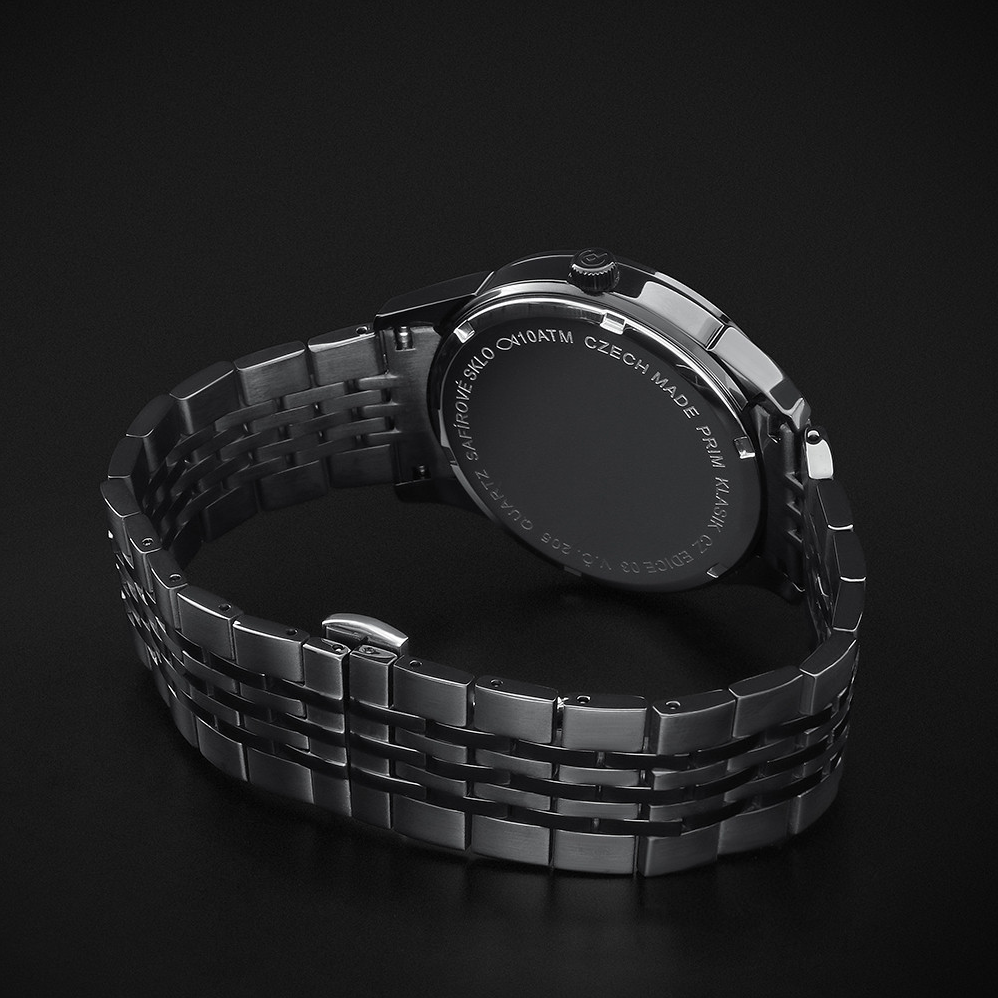 • Funkce a popis:Čas, datum, den v týdnu v češtině, japonský strojek quartz Miyota 2405 = přesnost chodu do 0,5 vteřiny denně, luminiscenční ručičky, šroubovací korunka