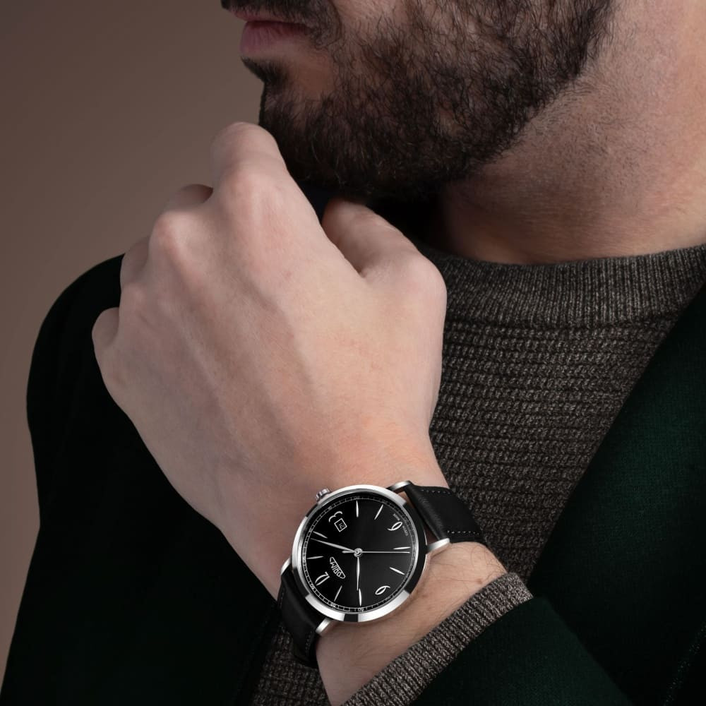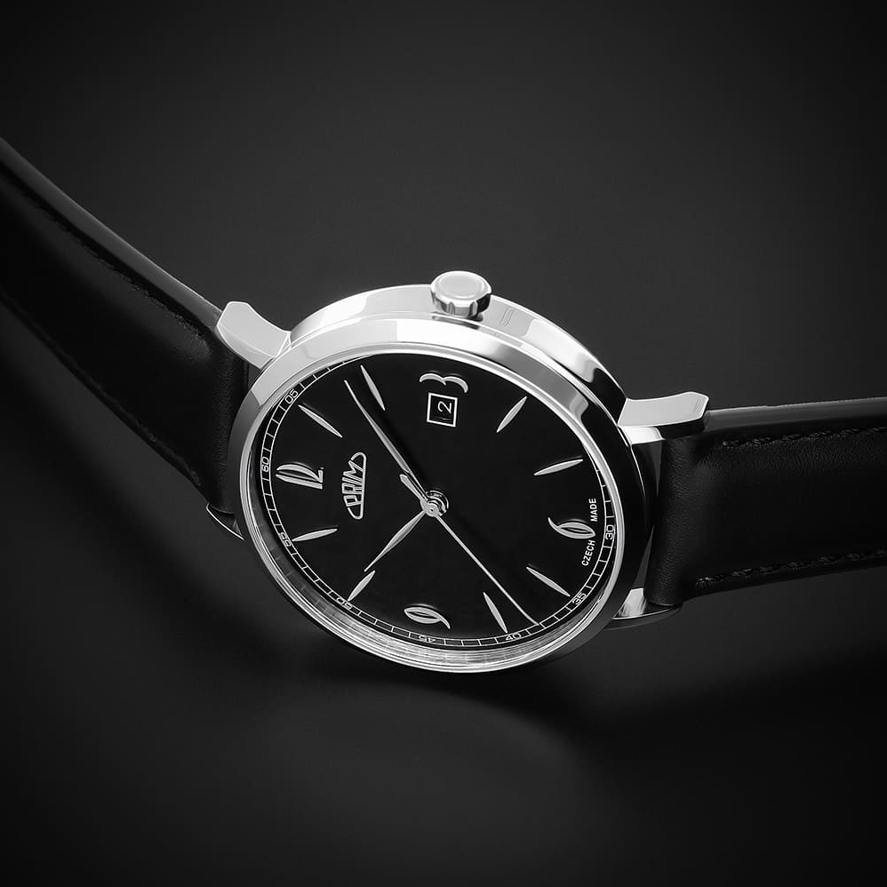 PRIM Noble - A W01P.13254.A jsou elegantní automatické hodinky PRIM, které staví na jemnosti a čistých liniích inspirovaných estetikou 60. let. Na první pohled zaujmou vyváženým designem, kde hrají prim decentní indexy, arabské číslice a promyšlené detaily číselníku. Díky kombinaci černé a stříbrné barvy číselníku působí model univerzálně - hodí se k obleku i k běžnému dennímu outfitu. Praktickým prvkem je také datum, ...