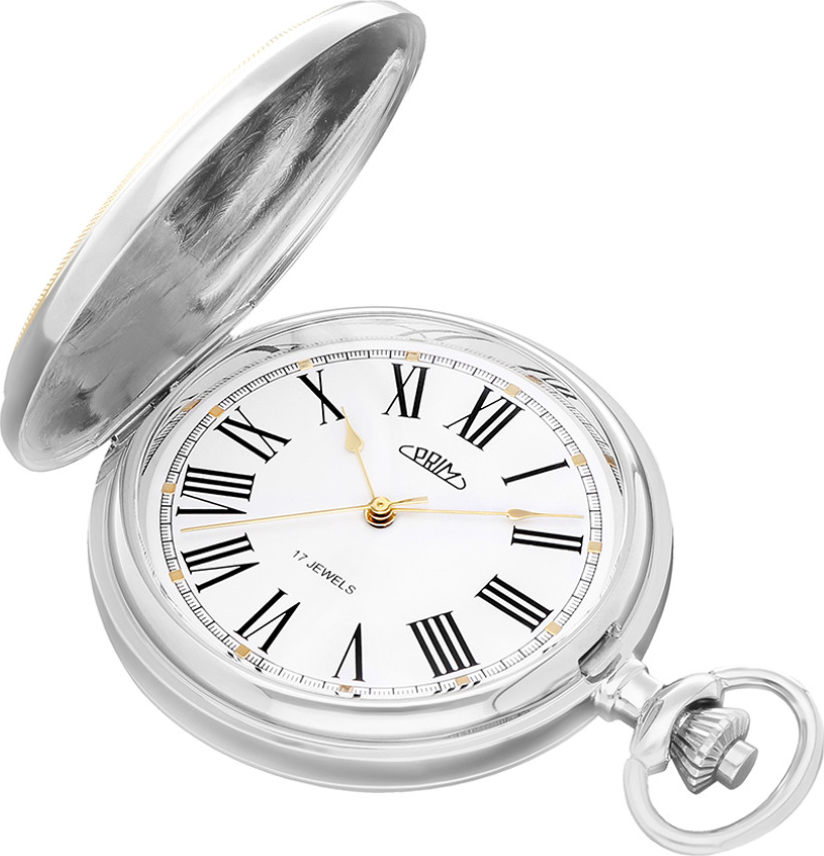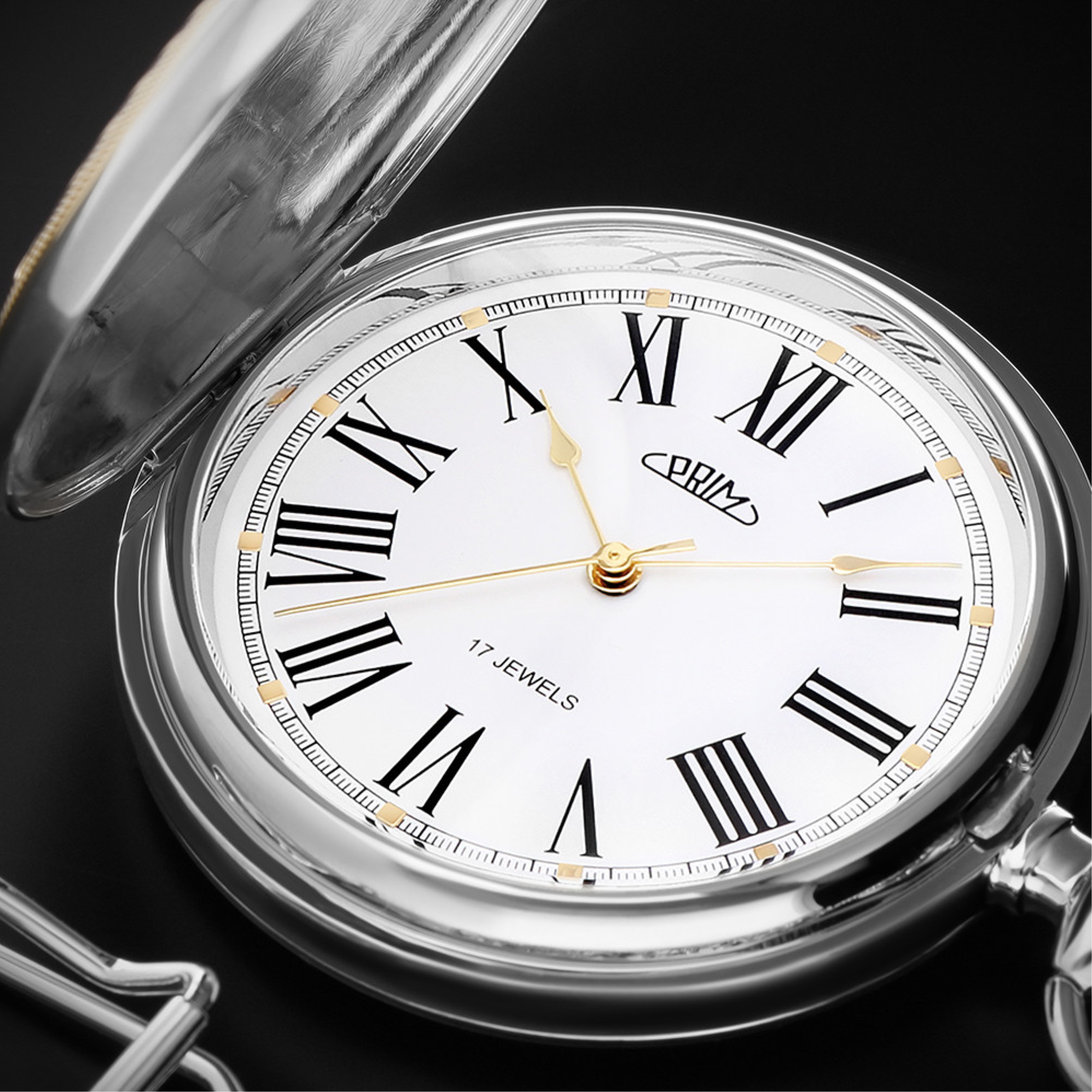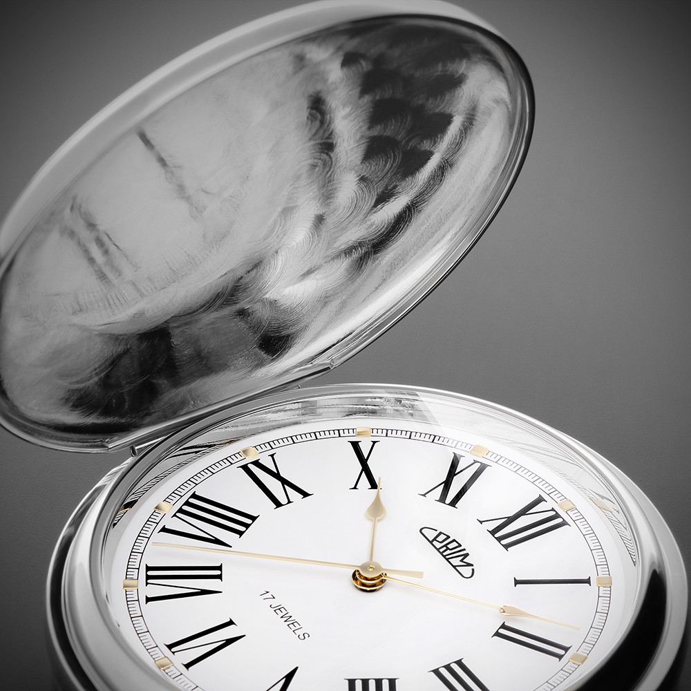 Klasické mechanické kapesní hodinky PRIM s ručním nátahem. Pouzdro neboli plášť hodinek je vyrobeno z mosazi s povrchovou úpravou PNP nebo Acid Gold, Acid Rose Gold. Designéři navrhli speciální design pláště a obohatili jej českým státním znakem dvouocasého lva, zatímco zadní stranu ponechali leštěnou.