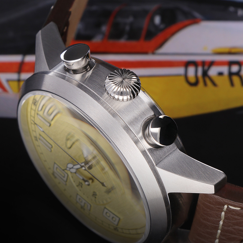 Exkluzivní pilotní mechanické hodinky s chronografem a automatickým natahováním se strojekem NE88A (Seiko),  ...