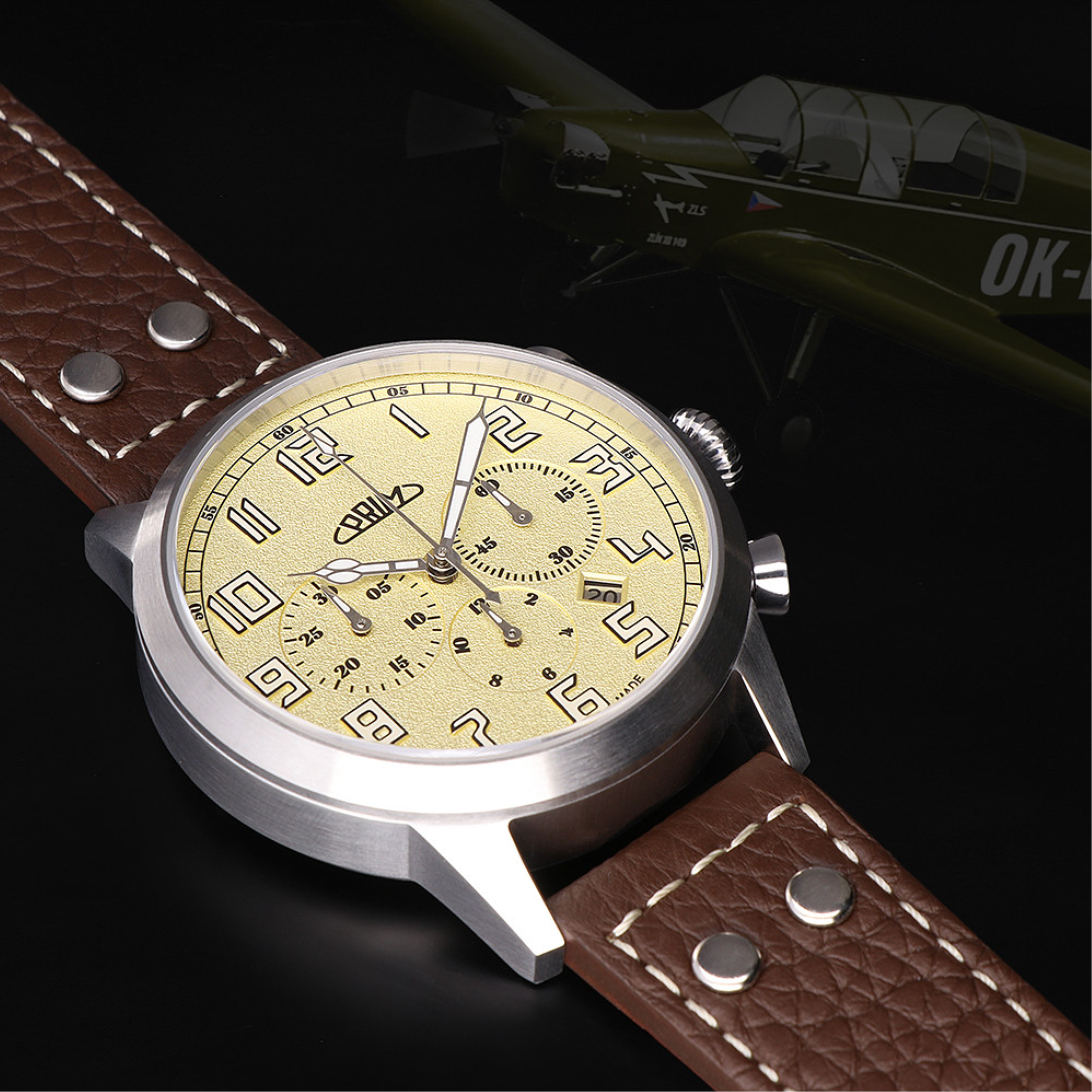 Moderní automatický chronograf PRIM Letoun Zlín Z-XII W91P.13171.B v limitované edici 50 ks. Tento unikátní model uchvátí sportovním vzhledem s populárními pilot design prvky a dokonalou luminiscencí.