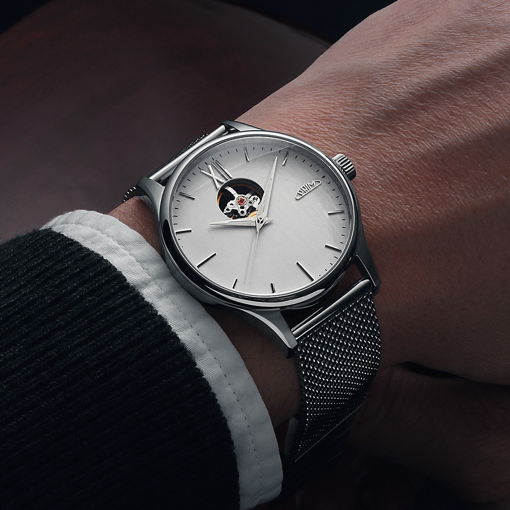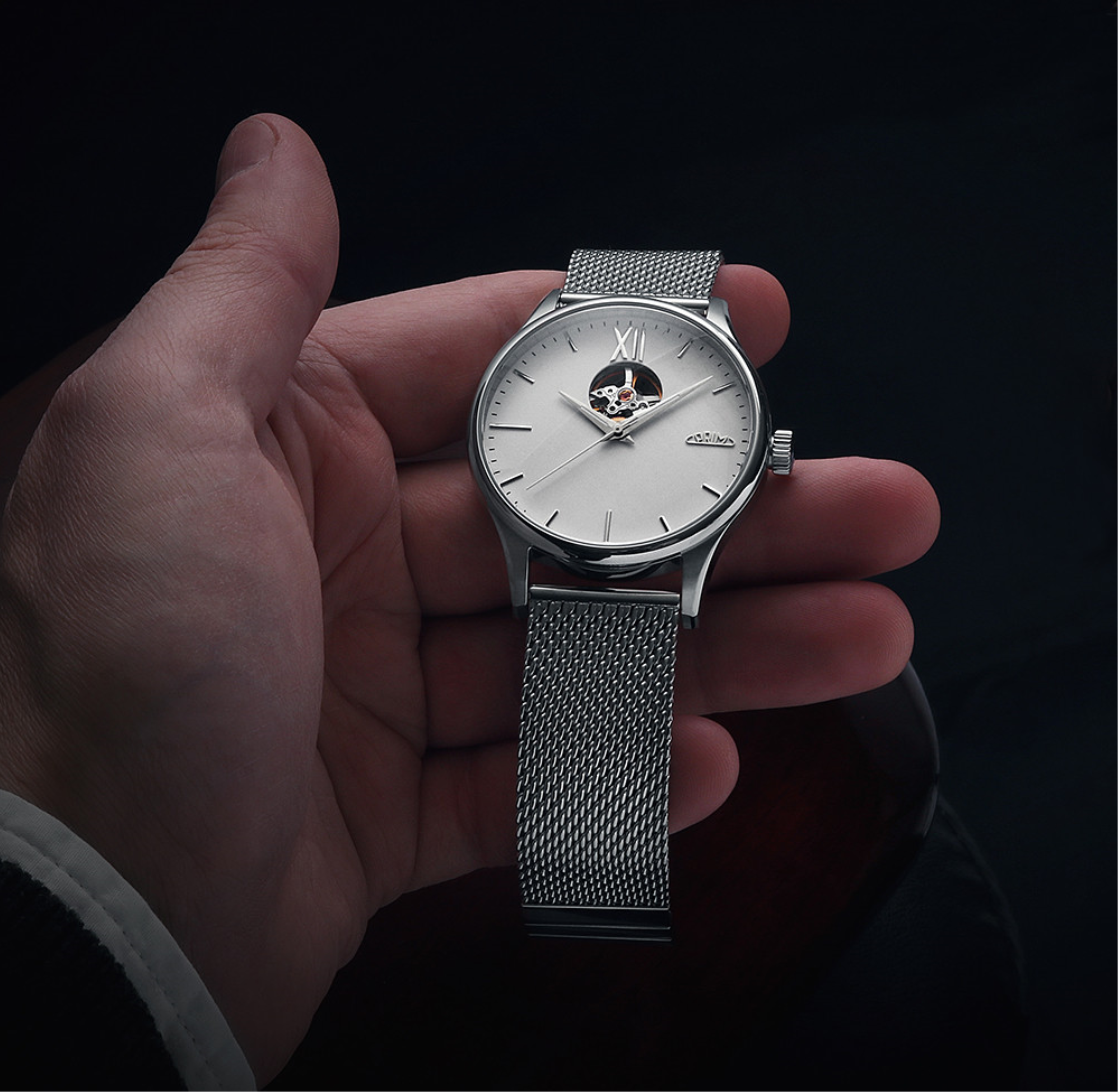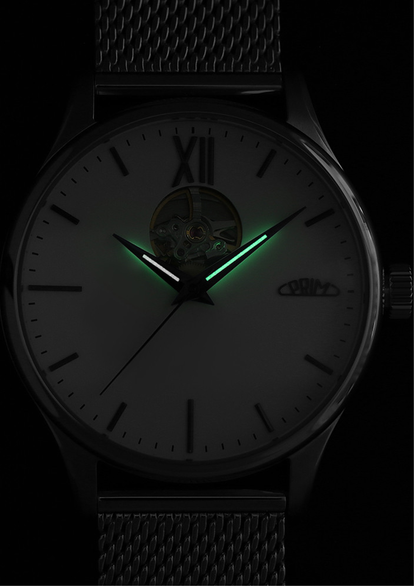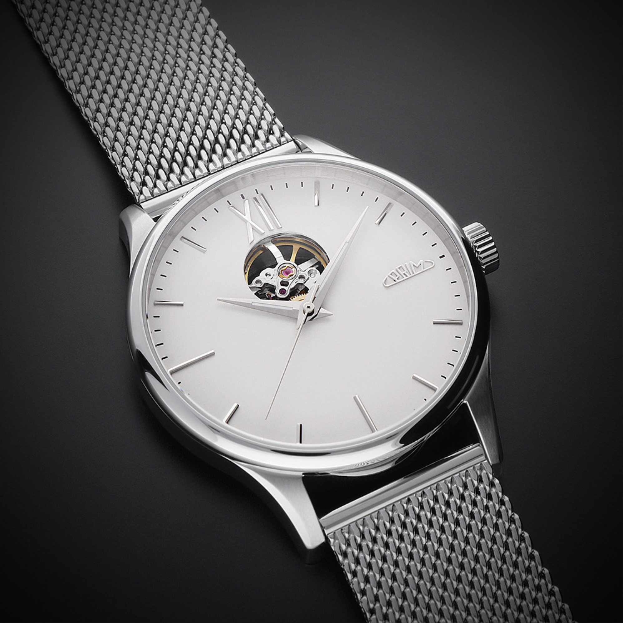 Pánské luxusní hodinky PRIM Primátor II ve speciální sérii 80 kusů. Exkluzivní hodinky inspirované klasickým a moderním designem s netradičním průzorem v horní části číselníku.
