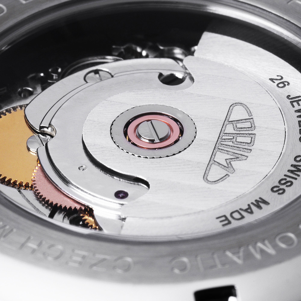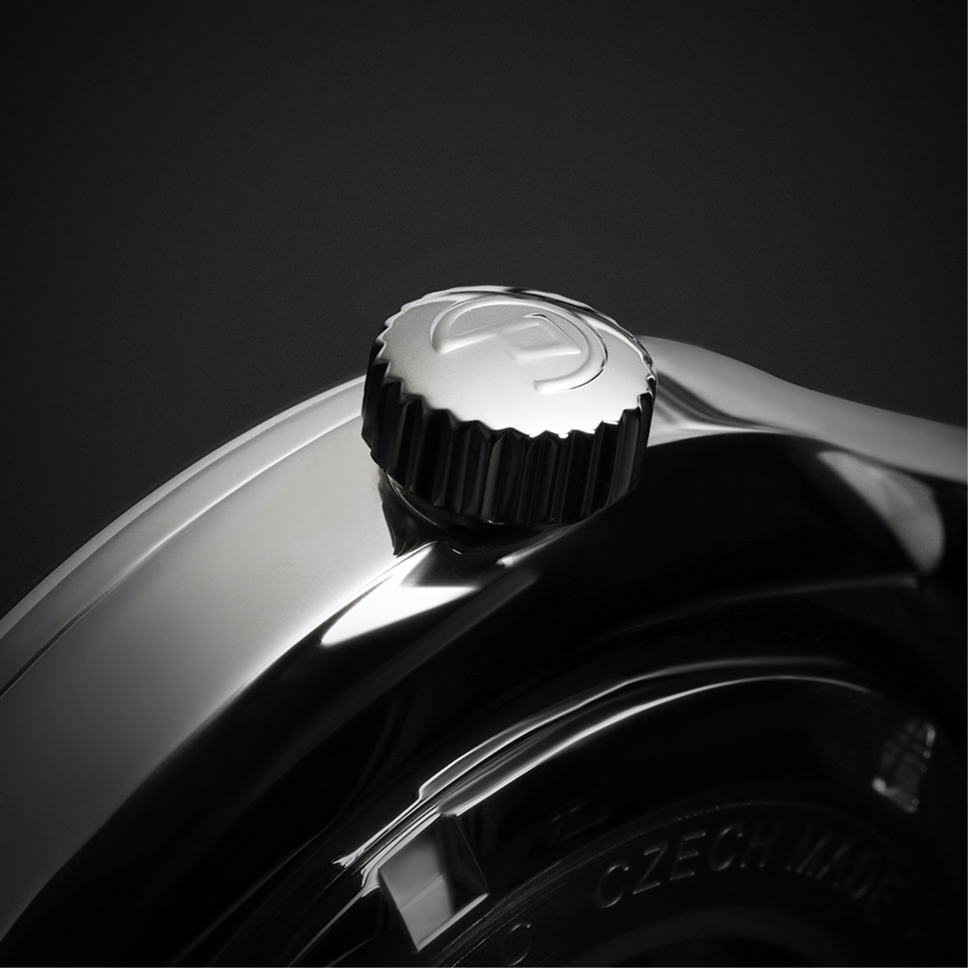 • Funkce a popis:Čas, mechanický strojek s automatickým nátahem, kalibr STP5-15 s 26 kameny vyrobený na zakázku od švýcarského výrobce, kmitočet strojku 28 800 kmitů/ hod. s rezervou nátahu až 44 hodin, luminiscence na ručkách