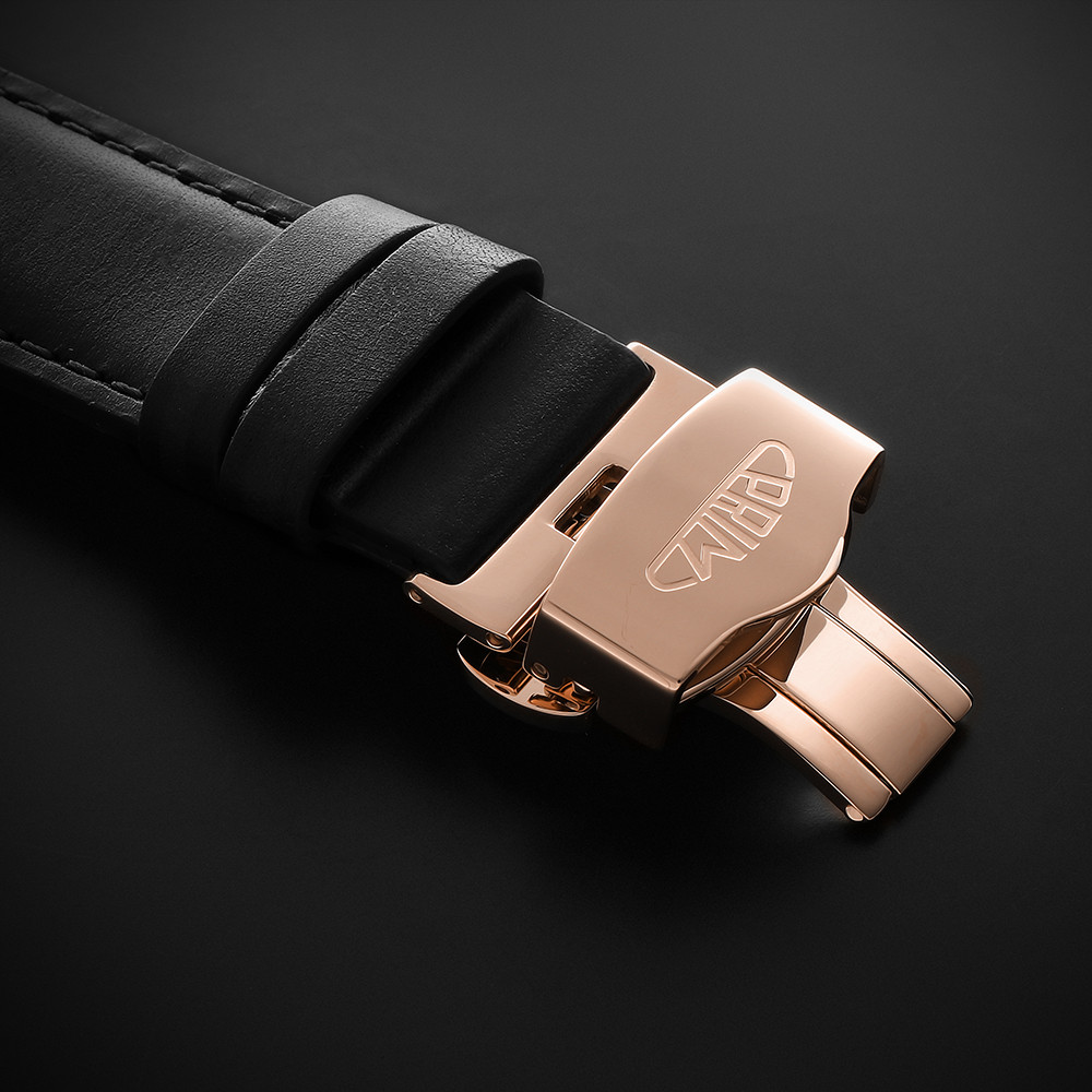 • Funkce a popis:Čas, mimostředná vteřinová ručka, mechanický japonský strojek s automatickým nátahem - kalibr 8N40 s rezervou až 42 hodin, polokmity setrvačky 21.600/h (4 Hz) = 3 - 5 vteřiny denně, skeletonový číselník, luminiscenční ručky