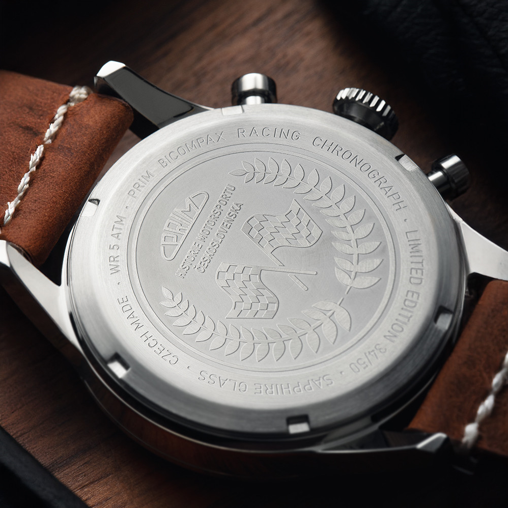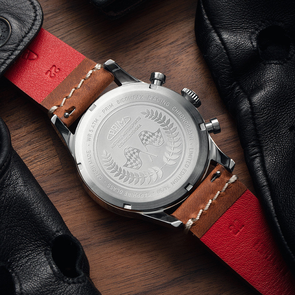 Hodinky PRIM Racing Bi-Compax Chronograph W91P.13211.B oslavují dědictví československého motorsportu limitovanou retro závodní kolekcí.