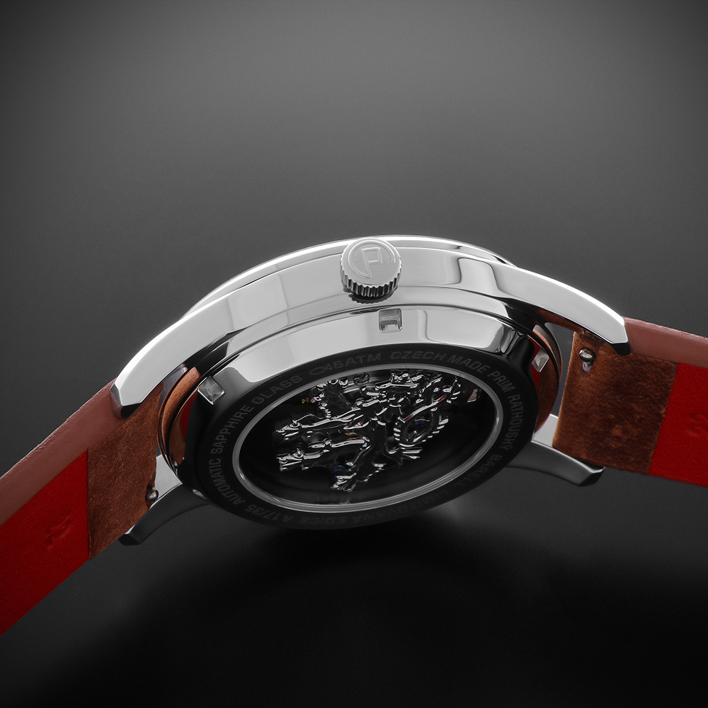 Limitovaná edice PRIM Rathouský Barell se vyznačuje švýcarským kalibrem s vlastním modifikovaným rotorem. Tento model zaujme čistým zpracováním a velmi přehlednými arabskými číslicemi, inspirovanými fontem BC Barell od grafického génia Jiřího Rathouského ...