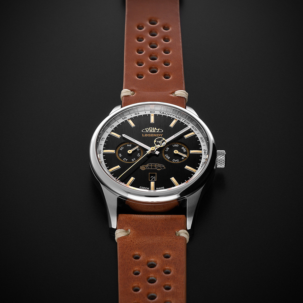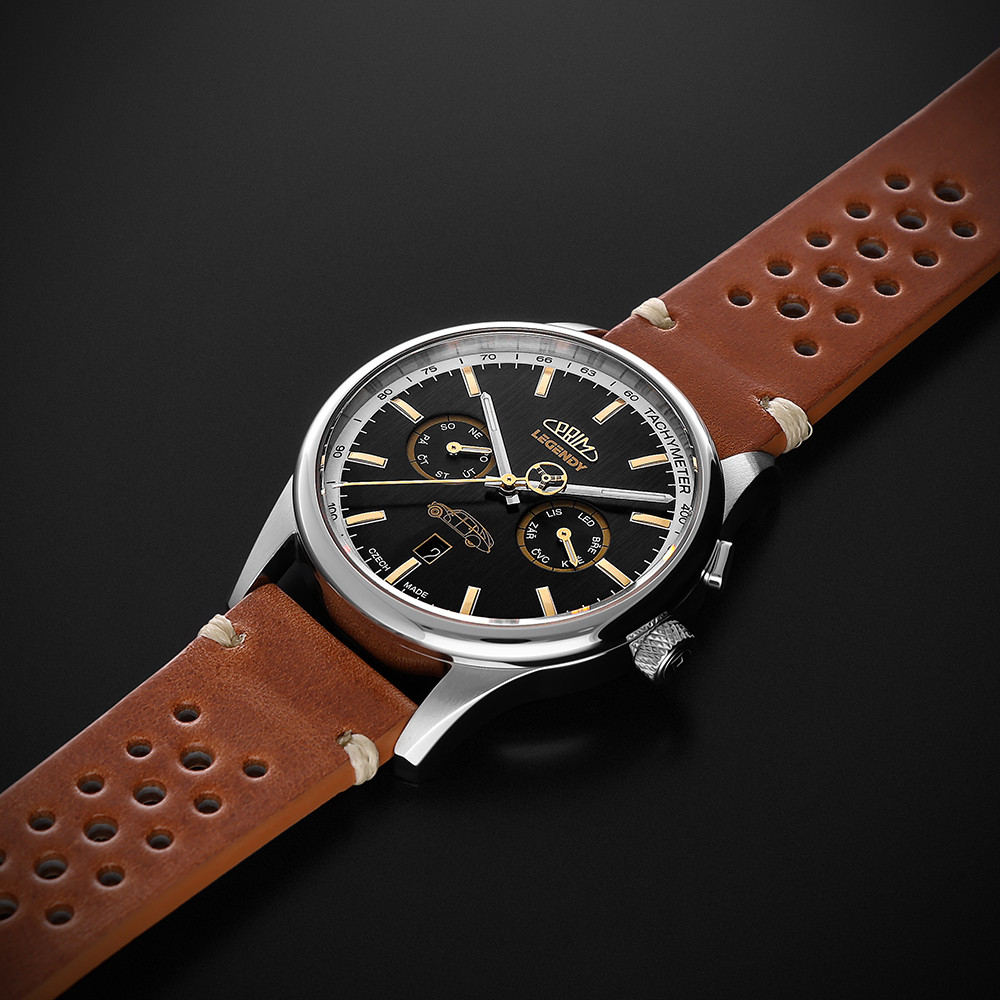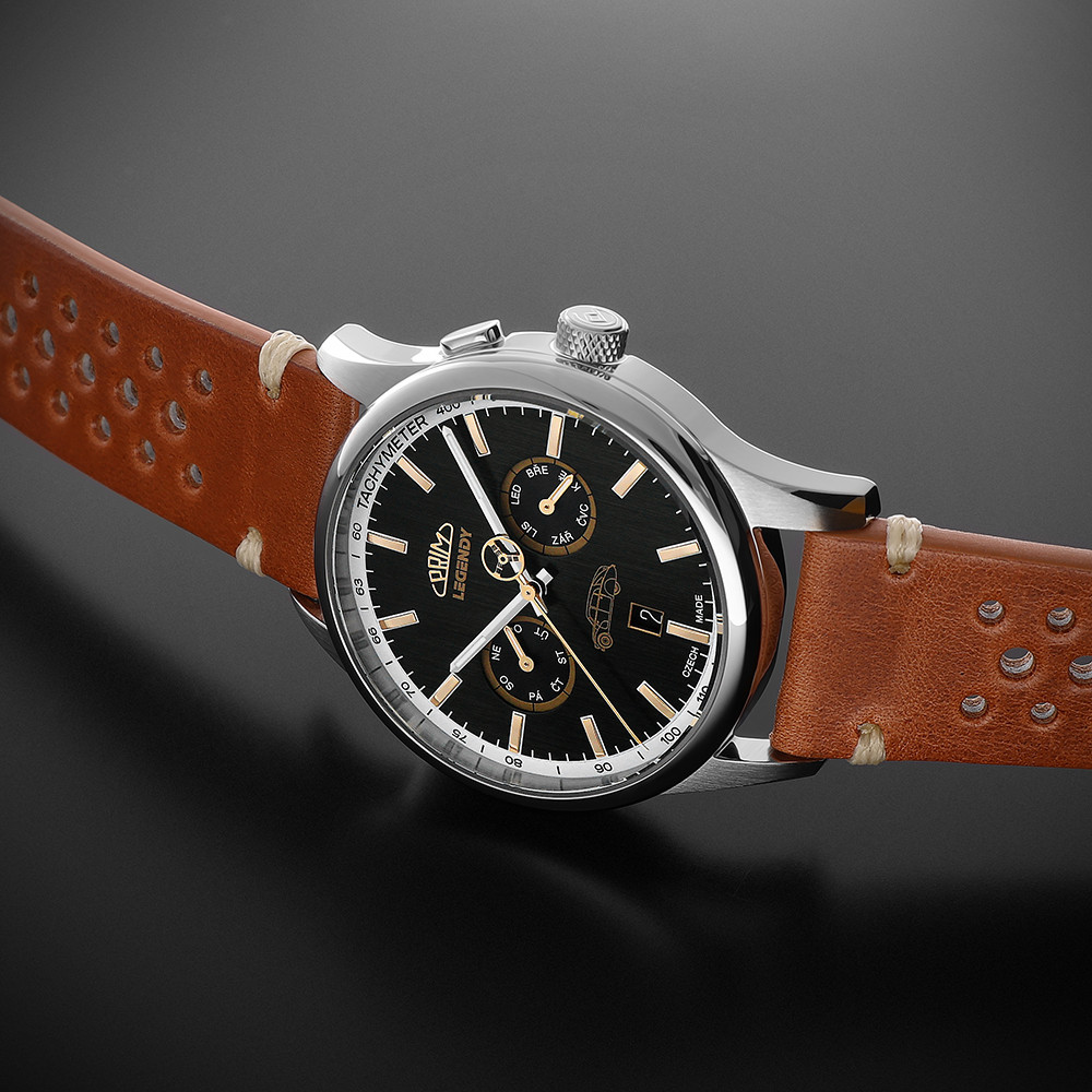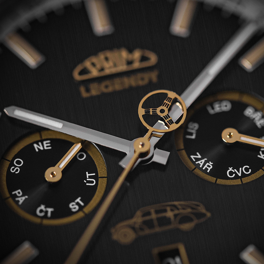 • Funkce a popis:Čas, datum, dny v týdnu a měsíce v českých zkratkách, mechanický japonský strojek s automatickým nátahem - Myiota 9122 s rezervou až 40 hodin, polokmity setrvačky 28.800/h (4 Hz) = 2 - 4 vteřiny denně, počet kamenů - 26, luminiscenční ručky a indexy, tachymeter