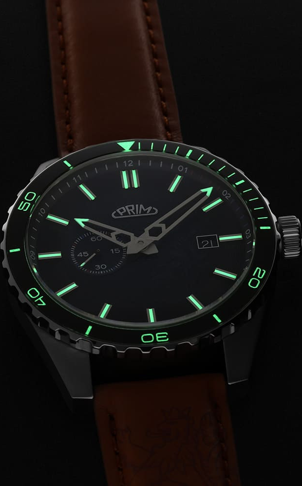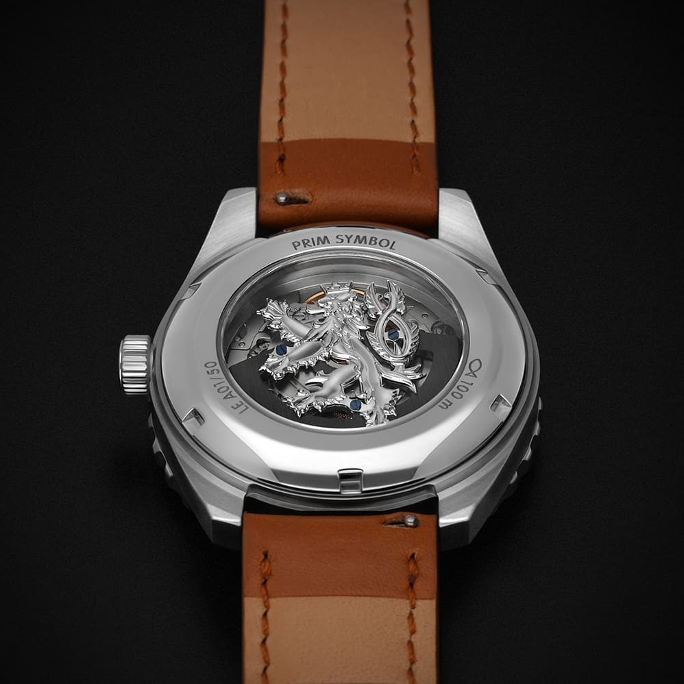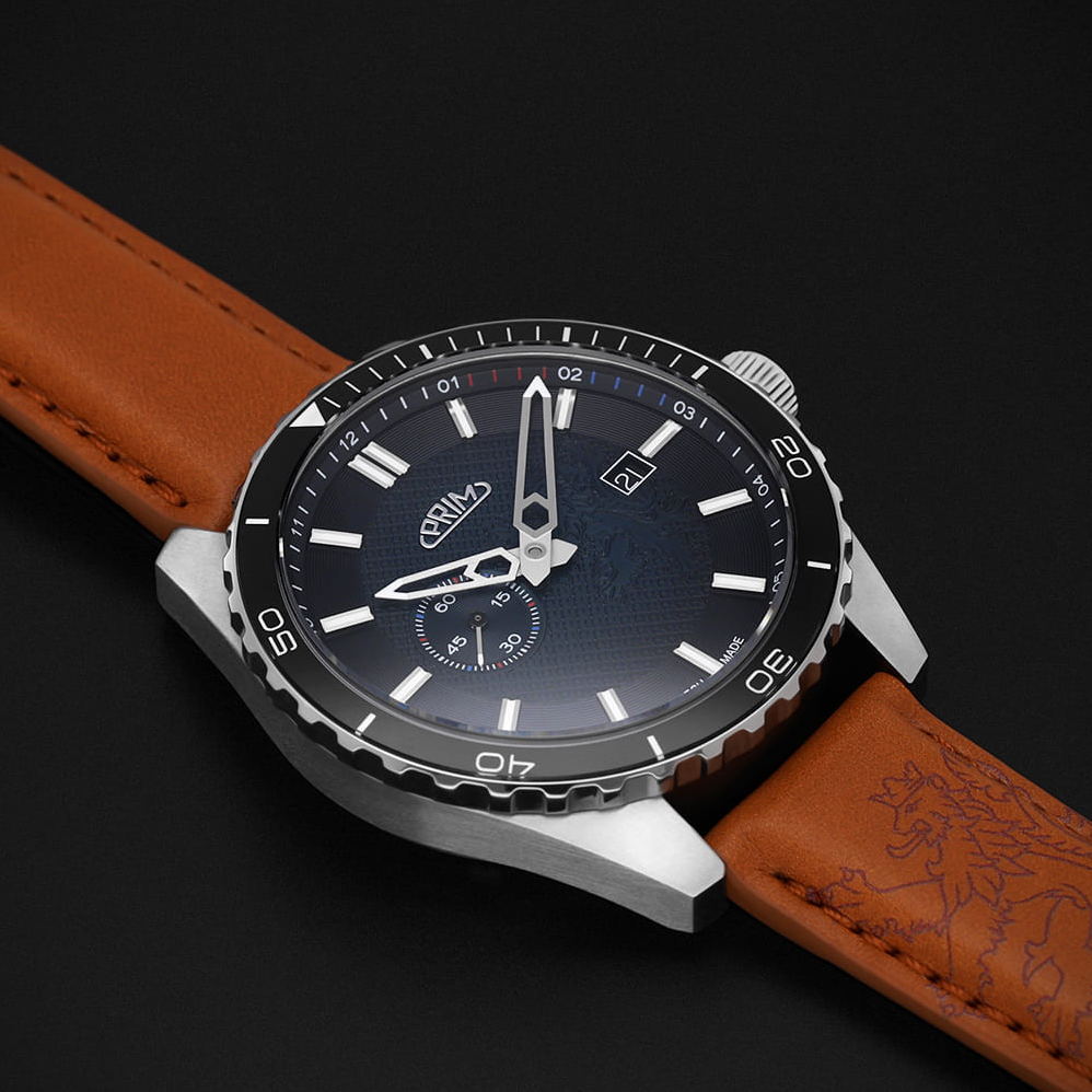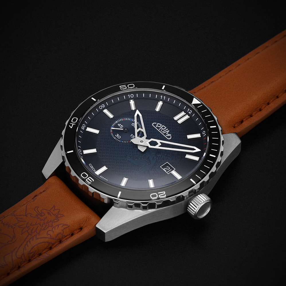 PRIM Symbol LE - A W91P.13267.A je limitovaná edice, která staví na silné národní symbolice - motiv českého lva se objevuje na číselníku, víku i rotoru. Díky tomu působí hodinky nejen jako precizní časomíra, ale i jako výrazný sběratelský kus. Edice je striktně omezená na 50 kusů, takže každý exemplář má jasnou hodnotu exkluzivity. Charakter modelu podporují také detaily s luminiscencí, které zůstávají čitelné i ve chvílích, kdy okolní světlo nestačí.