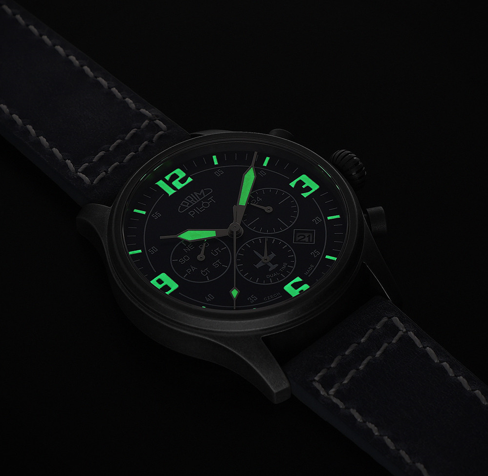 • Funkce a popis:Čas, datum, české dny v týdnu, duální čas, šroubovací korunka s vodotěsností 10 ATM, 0.1 mm silné japonské luminiscenční pilotní ručičky a indexy, vylepšený japonský kalibr JP75 s výdrží baterie až 8 let
