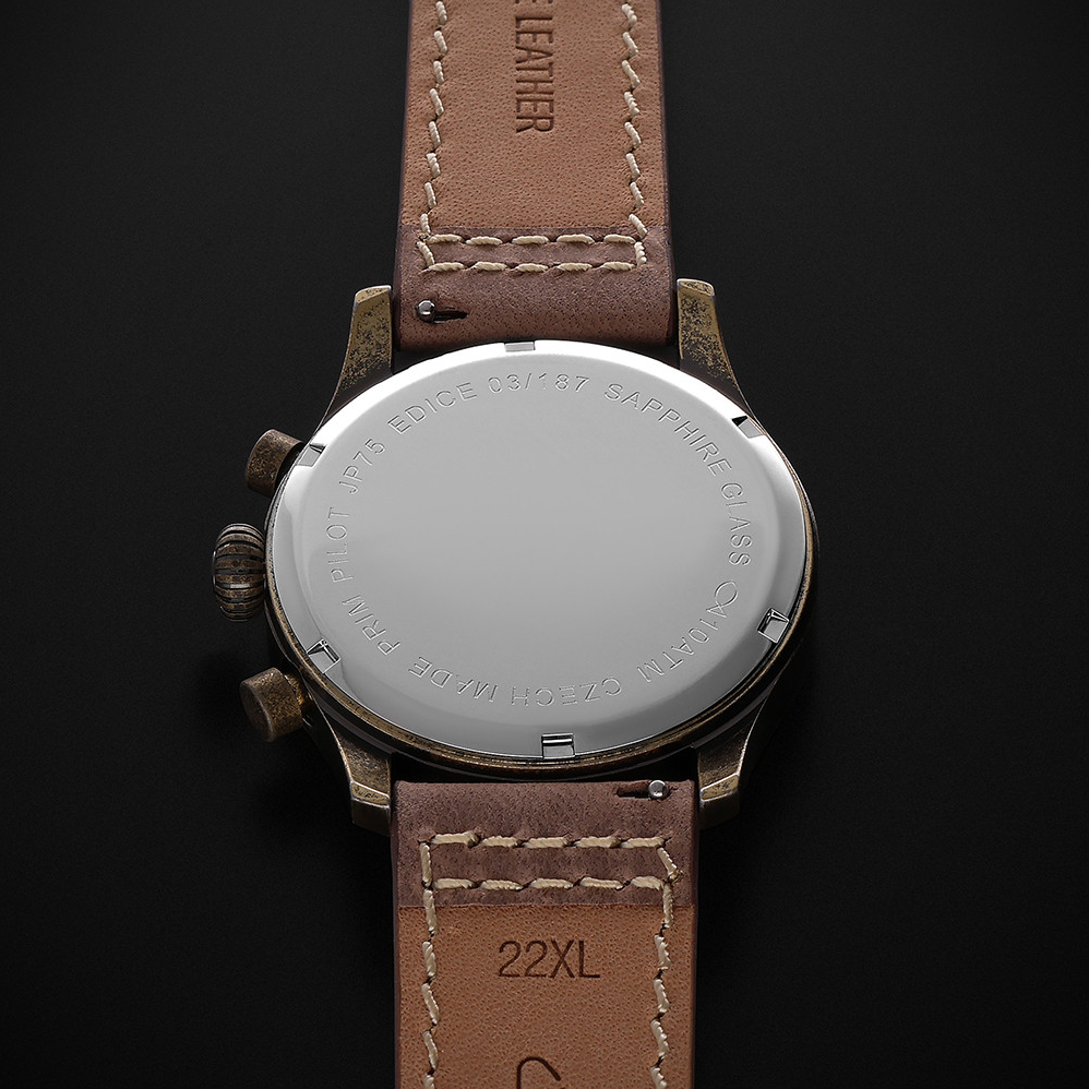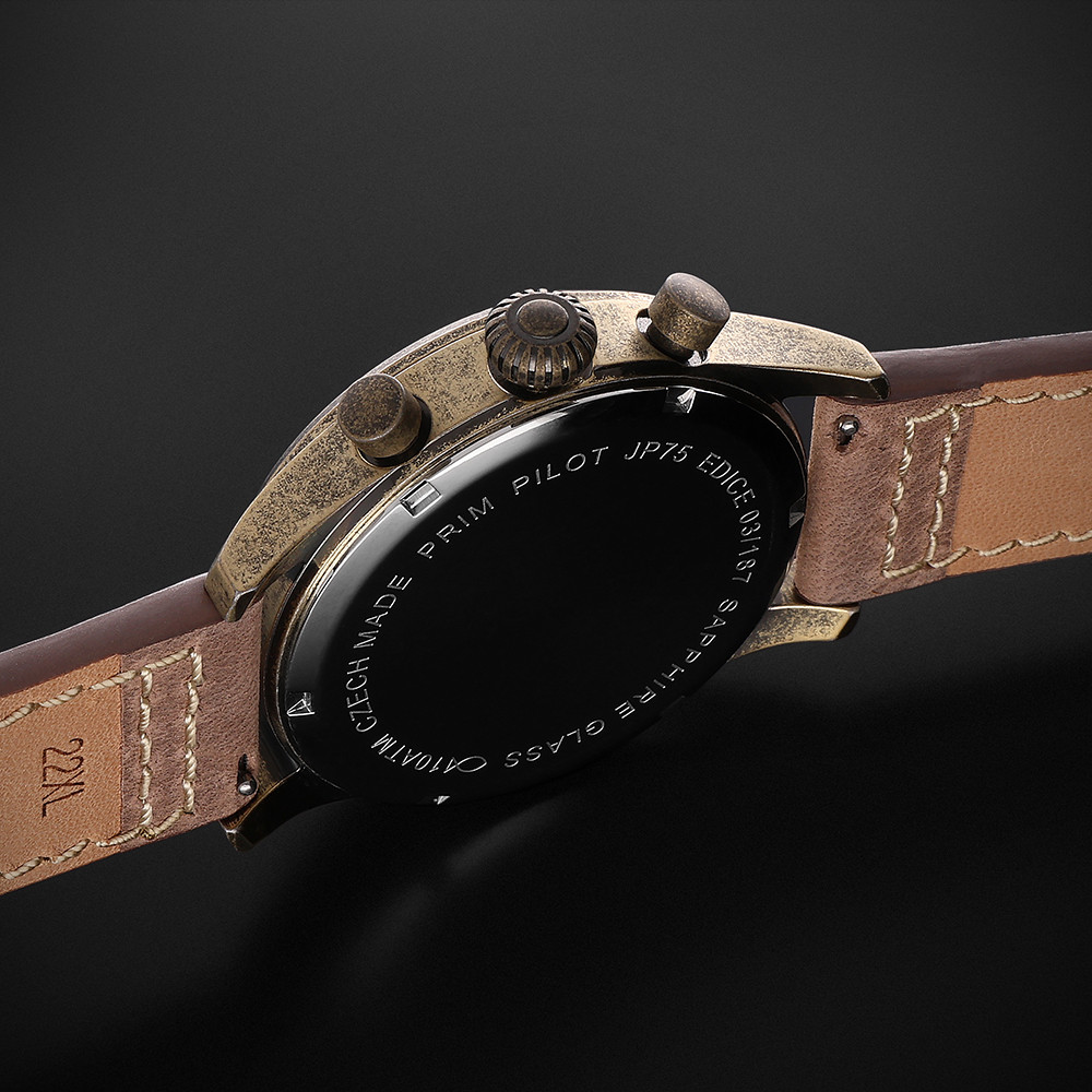 Pánské hodinky PRIM Pilot JP75 – edice 2025 propojují vysokou kvalitu zpracování s důrazem na funkčnost a jedinečný design inspirovaný letectvím. Pouzdro je vyrobeno z prvotřídní ušlechtilé oceli 316L, s odolnou IP/IPG povrchovou úpravou v antické barvě, která dodává modelu nadčasový originální charakter.