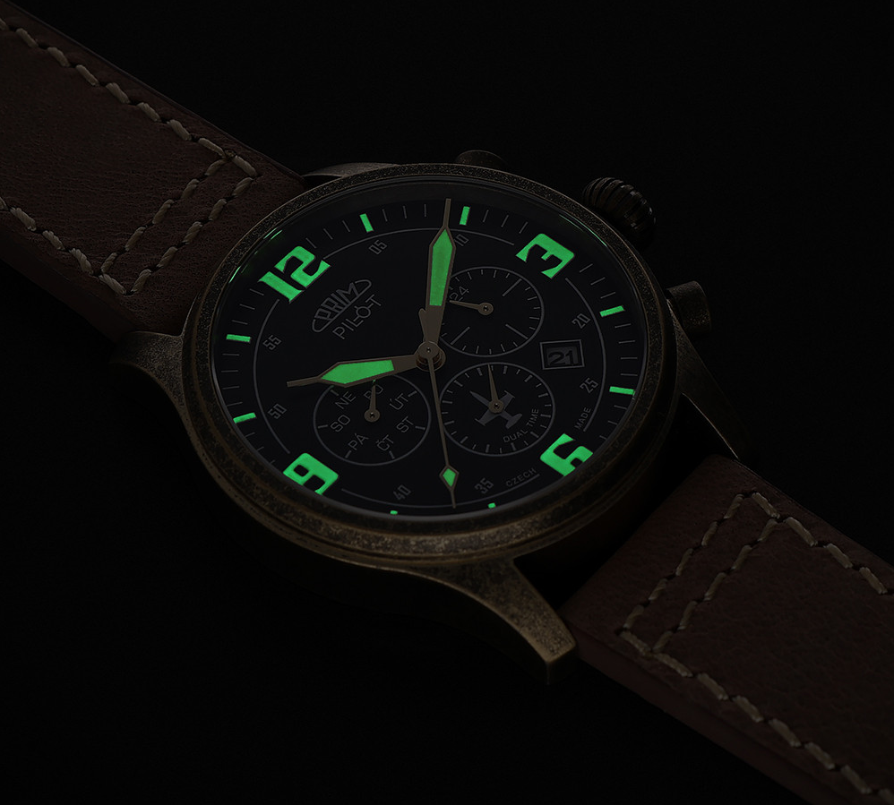 • Funkce a popis:Čas, datum, české dny v týdnu, duální čas, šroubovací korunka s vodotěsností 10 ATM, 0.1 mm silné japonské luminiscenční pilotní ručičky a indexy, vylepšený japonský kalibr JP75 s výdrží baterie až 8 let
