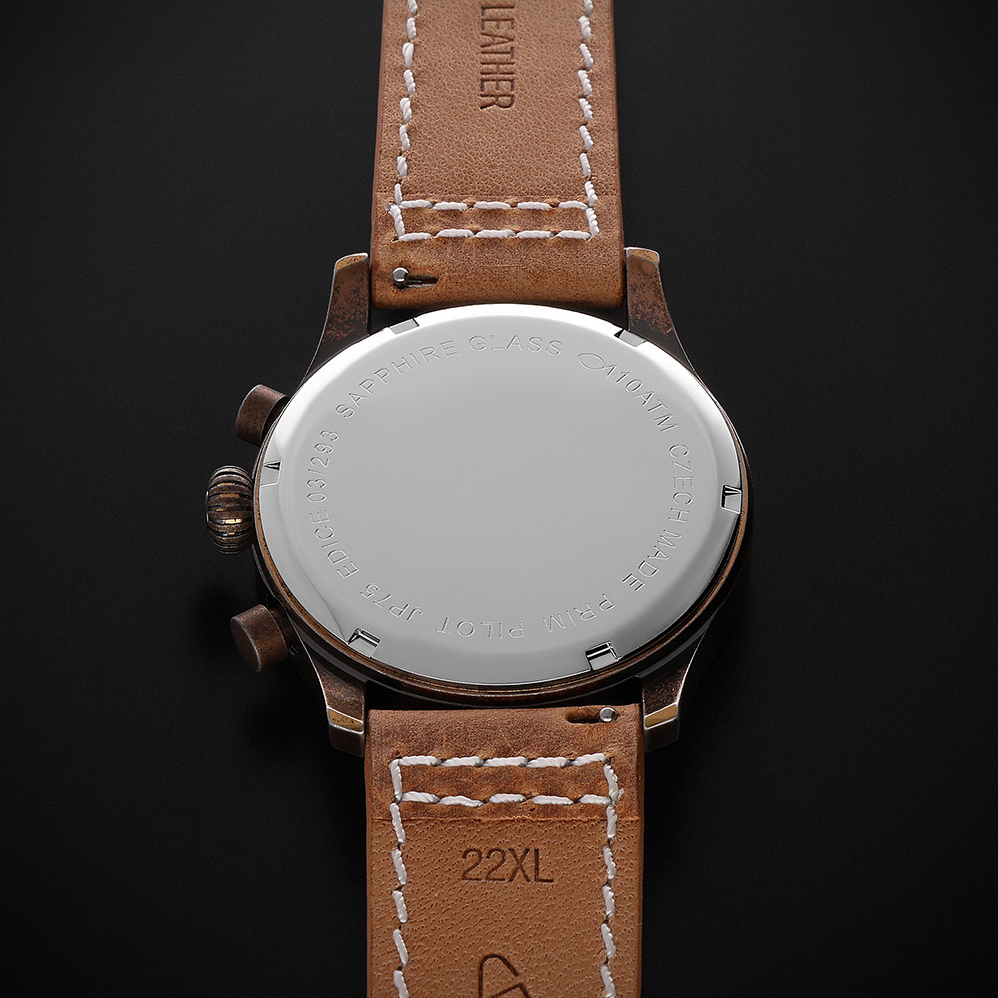 Pánské hodinky PRIM Pilot JP75 – edice 2025 propojují vysokou kvalitu zpracování s důrazem na funkčnost a jedinečný design inspirovaný letectvím. Pouzdro je vyrobeno z prvotřídní ušlechtilé oceli 316L, s odolnou IP/IPG povrchovou úpravou v antické barvě, která dodává modelu nadčasový originální charakter.