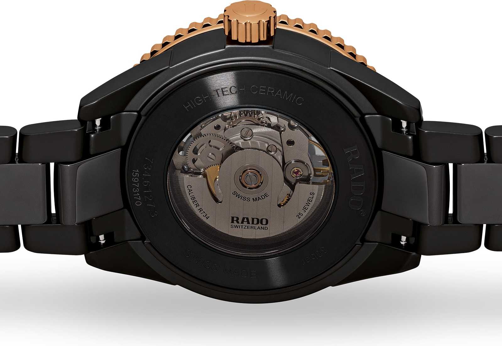 keramikou. Rado zkrátka patří mezi špičku ve výrobě high-tech materiálů.Automatický strojek švýcarské výroby Rado Caliber R734 disponuje s úžasnou