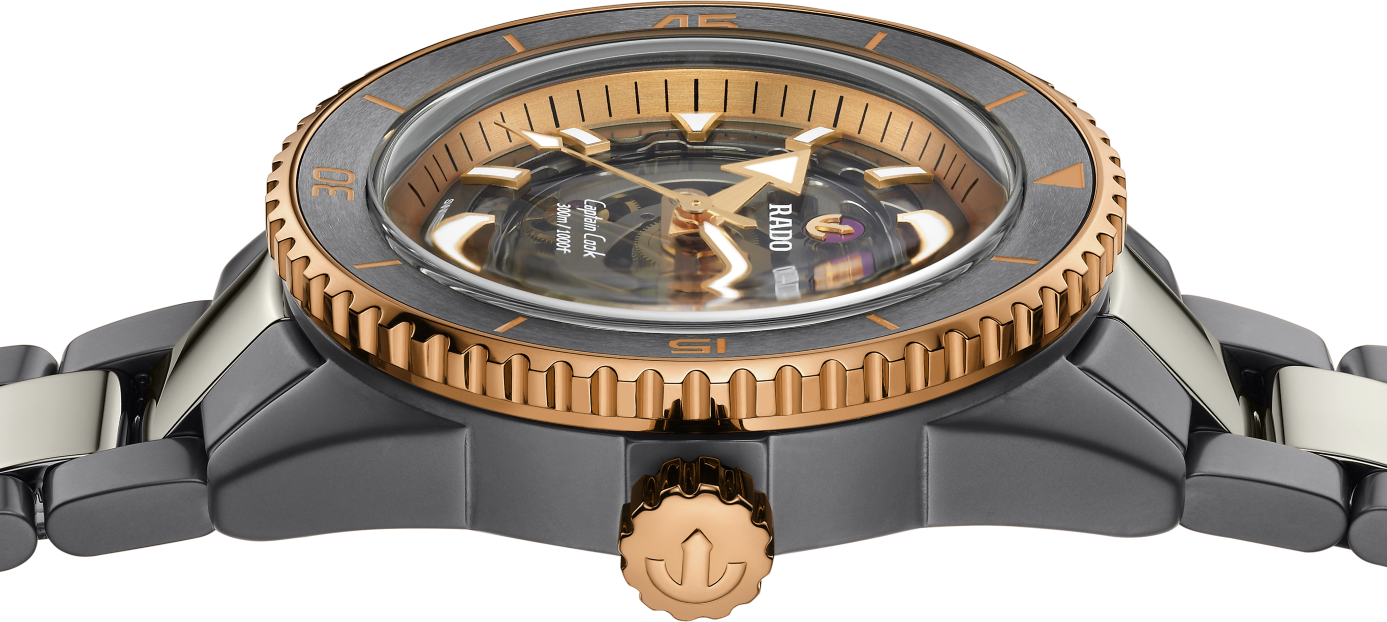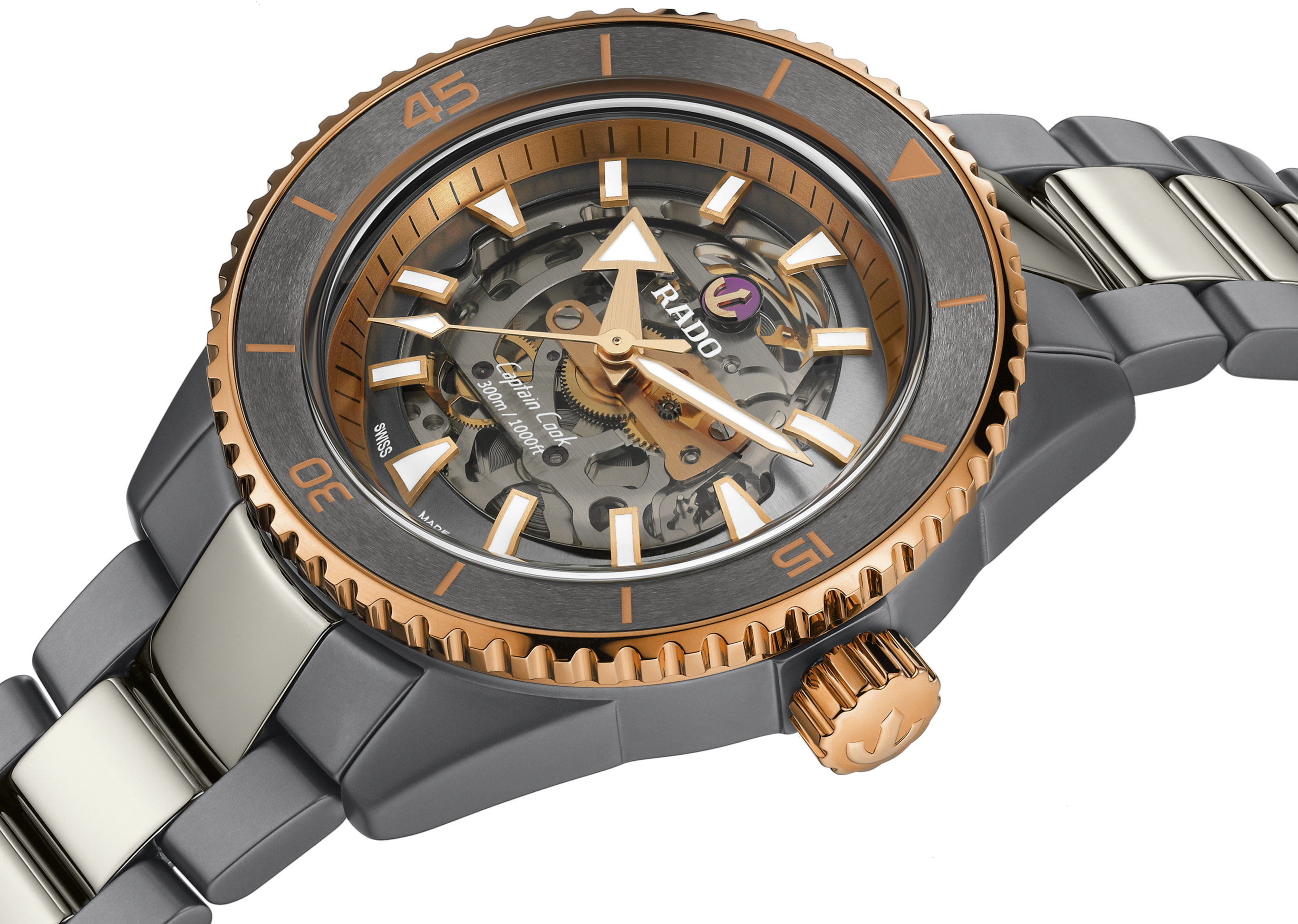 Captain Cook High-Tech Ceramic jsou nejen první hodinky Rado se zbrusu novým kalibrem R808, ale také první model Captain Cook s high-tech keramickými vložkami se strukturou proti otiskům prstů. Navíc je poprvé celá luneta a korunka vyrobeny z high-tech keramiky. Tříruční strojek překračuje standardní požadavky na test přesnosti od 3 do 5 poloh díky antimagnetickému vlásku Nivacron™.