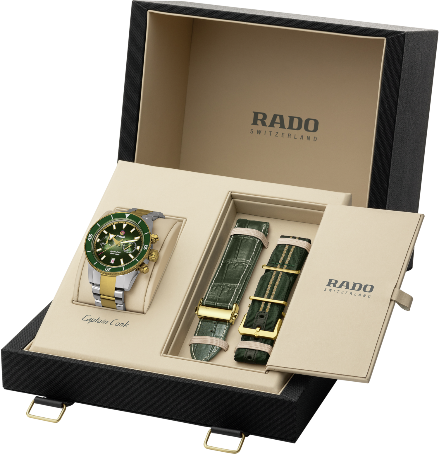 Vydejte se na cestu stylu a dobrodružství s hodinkami Rado Captain Cook Automatic Chronograph, které v sobě spojují moderní estetiku s výraznými sportovními prvky. Uvnitř robustního pouzdra pracuje automatický kalibr R801, jeden z nejpokročilejších strojků značky Rado. Nabízí působivou rezervu chodu 59 hodin, setrvačka je osazena antimagnetickým vláskem Nivachron™ a je precizně seřízen v pěti pozicích