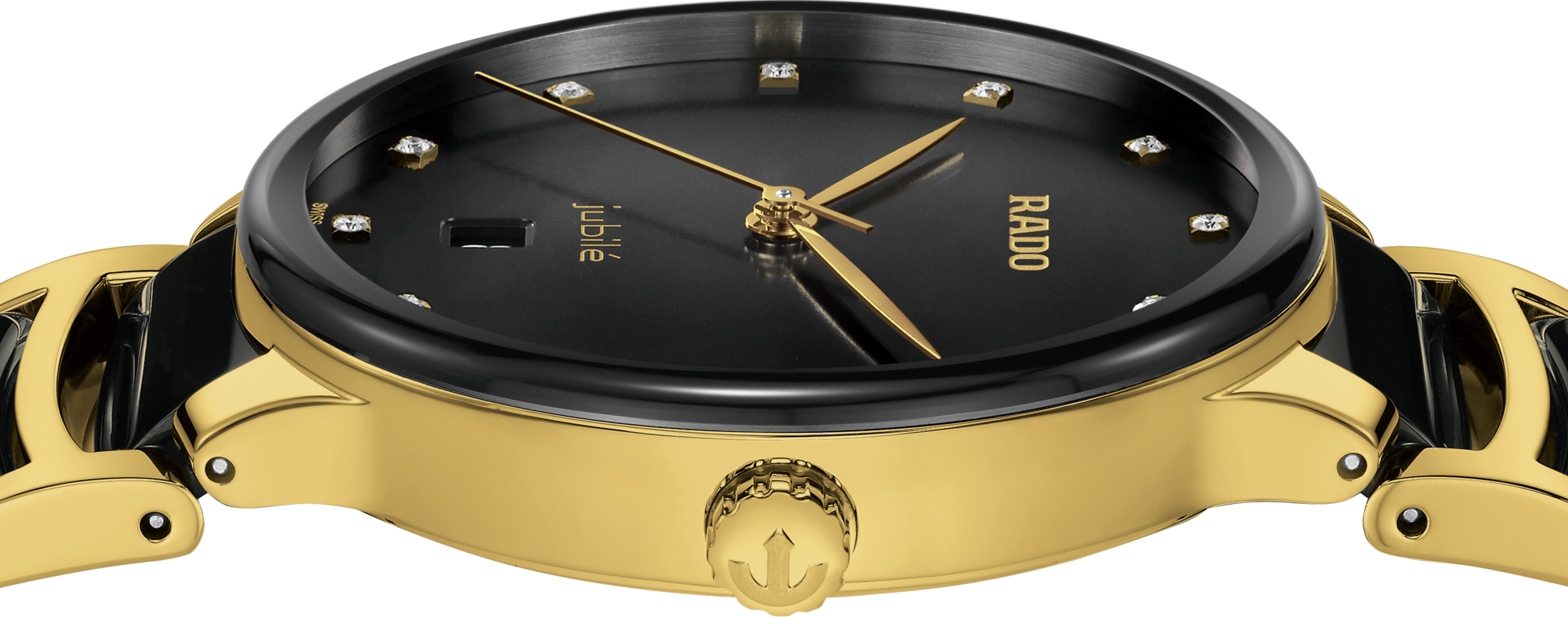 Klasické hodinky Centrix Quartz Diamonds byly přepracovány nejen technicky, ale i esteticky. Upravený model R30022742 má zaoblené safírové sklíčko, které zasahuje až k okraji, a zakřivené pouzdro splývající se zakřiveným okrajem krystalu. Celkový vzhled těchto ikonických hodinek dotvářejí upravené ouška pouzdra a náramek z leštěné nerezové oceli potažené PVD vrstvou žlutého zlata s černou high-tech keramikou.  ...