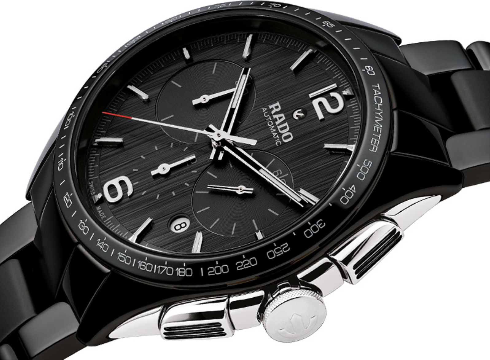 • Funkce a popis:Čas, datum, chronograf = stopky, tachymetr = km/h, luminiscenční ručičky a indexy, strojek swiss ETA 2894-2 (21 kamenů) - polokmity setrvačky 28.800/h = přesnost chodu 2 - 4 vteřiny denně, automatic + ruční nátah, rezerva chodu 48 hodin, materiál HTC (High-tech Ceramic) - velmi tvrdý materiál odolný vůči otěru o tvrdosti 1.200 - 1.900 Vickers (velmi lehký,velmi příjemný na nošení - ihned získává teplotu Vašeho zápěstí, patent Rado), průhledné zadní víčko pro náhled na strojek (safírové), zapínání na titanovou klipsu (motýlkové)