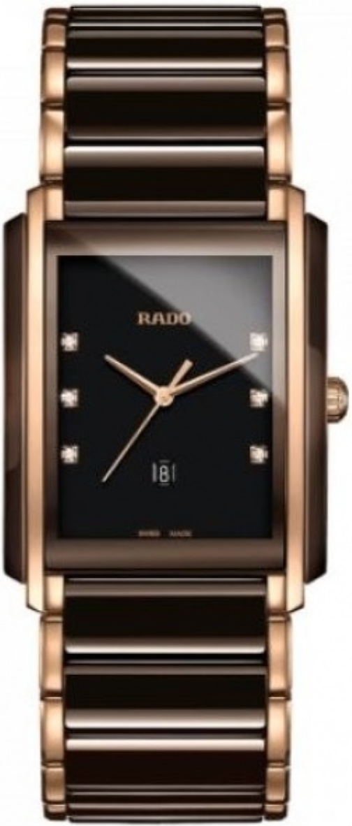 • Funkce a popis:Čas, datum, strojek swiss ETA quartz ETA E61.111 - přesnost chodu 0 - 0,4 vteřiny denně, materiál HTC (High-tech Ceramic) - velmi tvrdý materiál odolný vůči otěru o tvrdosti 1.200 - 1.900 Vickers (velmi lehký,velmi příjemný na nošení - ihned získává teplotu Vašeho zápěstí, patent Rado) v kombinaci s ušlechtilou nerez ocelí zlacenou tvrdým zlacením PVD, zapínání na titanovou krytou sponu (motýlkové), číselník zdobí 6 diamantů o váze 0,048 karátů