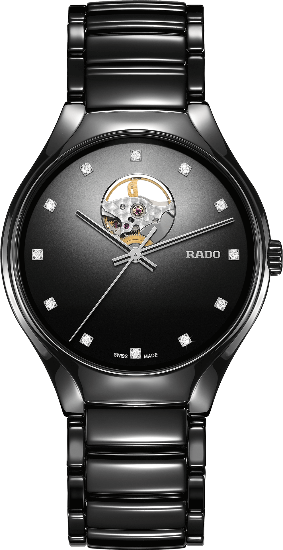 Rado True má dokonalé leštěné pouzdro včetně náramku - z tohoto designu lze spolehlivě a zřetelně poznat hodinky Rado. Nová řada True Secret nabízí letmý pohled na setrvačku strojku, která určuje přesnost kvalitnímu automatickému švýcarskému strojku. S otvorem číselníku ve 12 hodin je design těchto hodinek opravdu originální. Udrží si svůj lesk pro nadcházející roky a zároveň nabízí lehkost a pohodlí uživatele. To je Rado True.