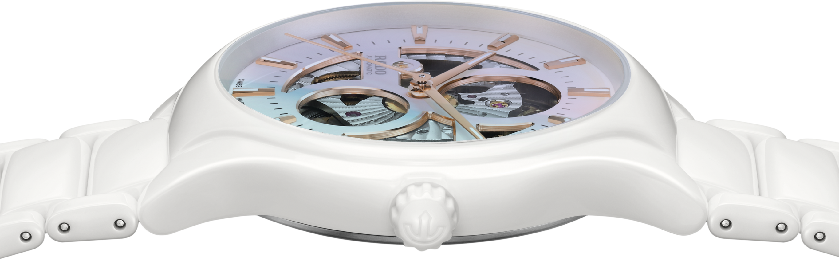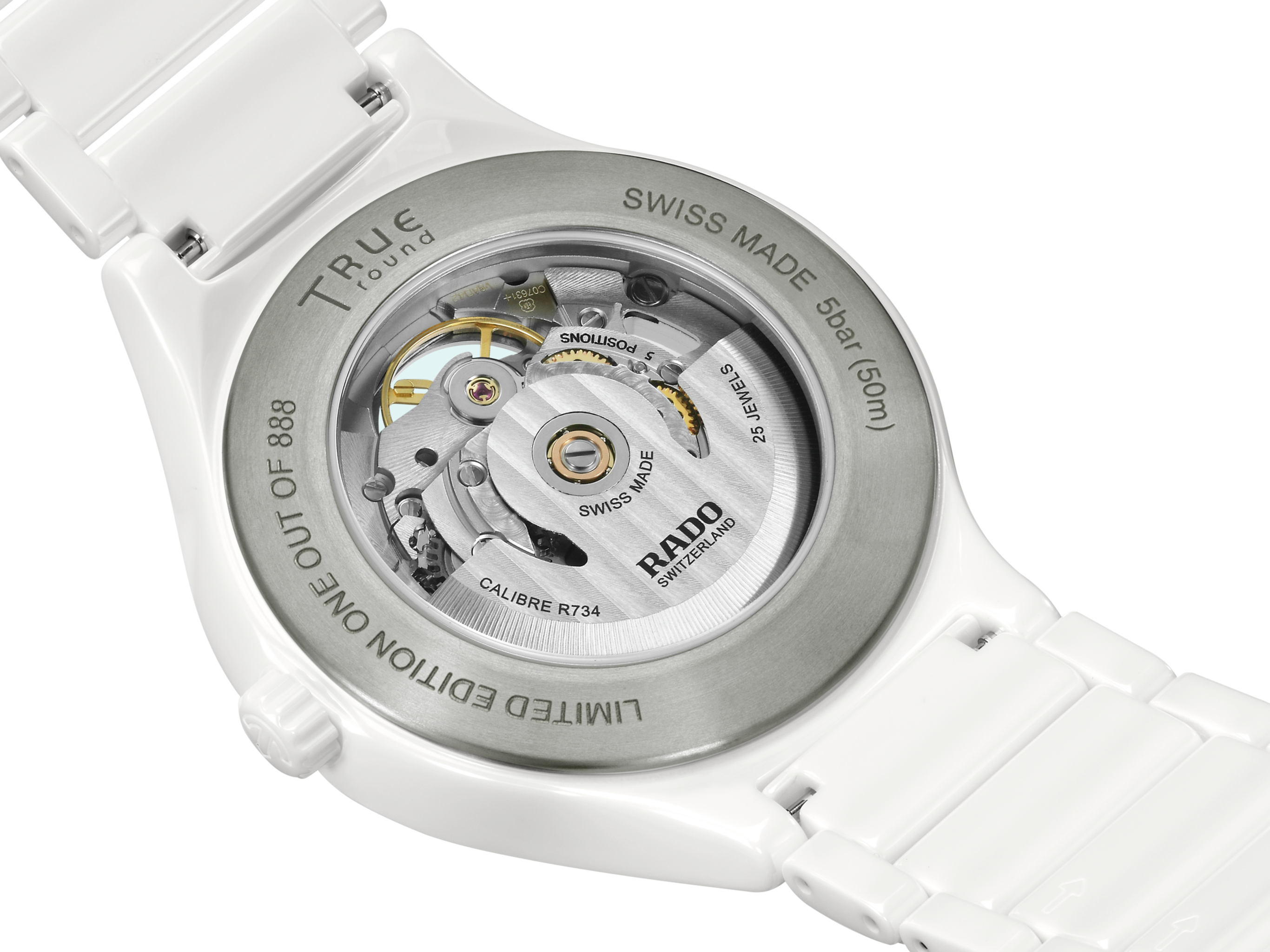 keramikou. Rado zkrátka patří mezi špičku ve výrobě high-tech materiálů.Automatický strojek švýcarské výroby Rado Caliber R734 disponuje s úžasnou