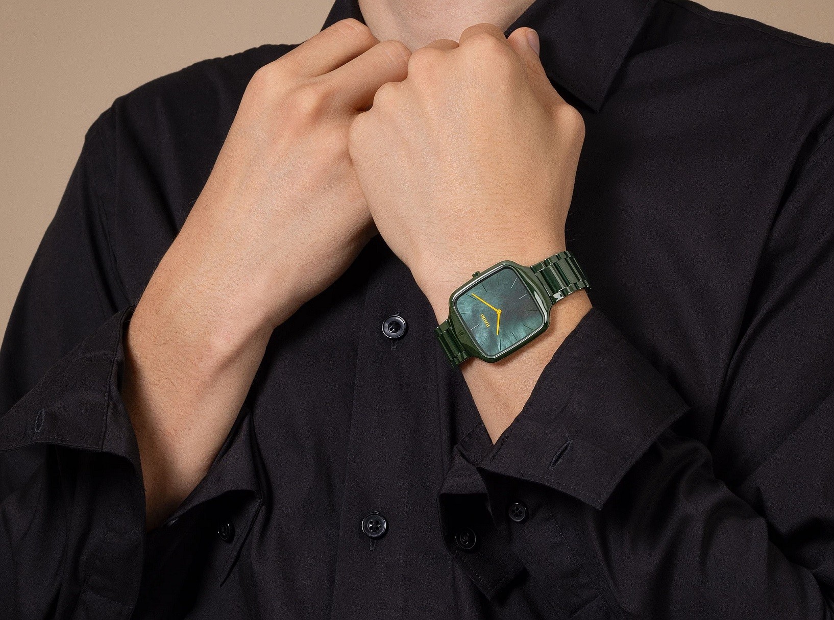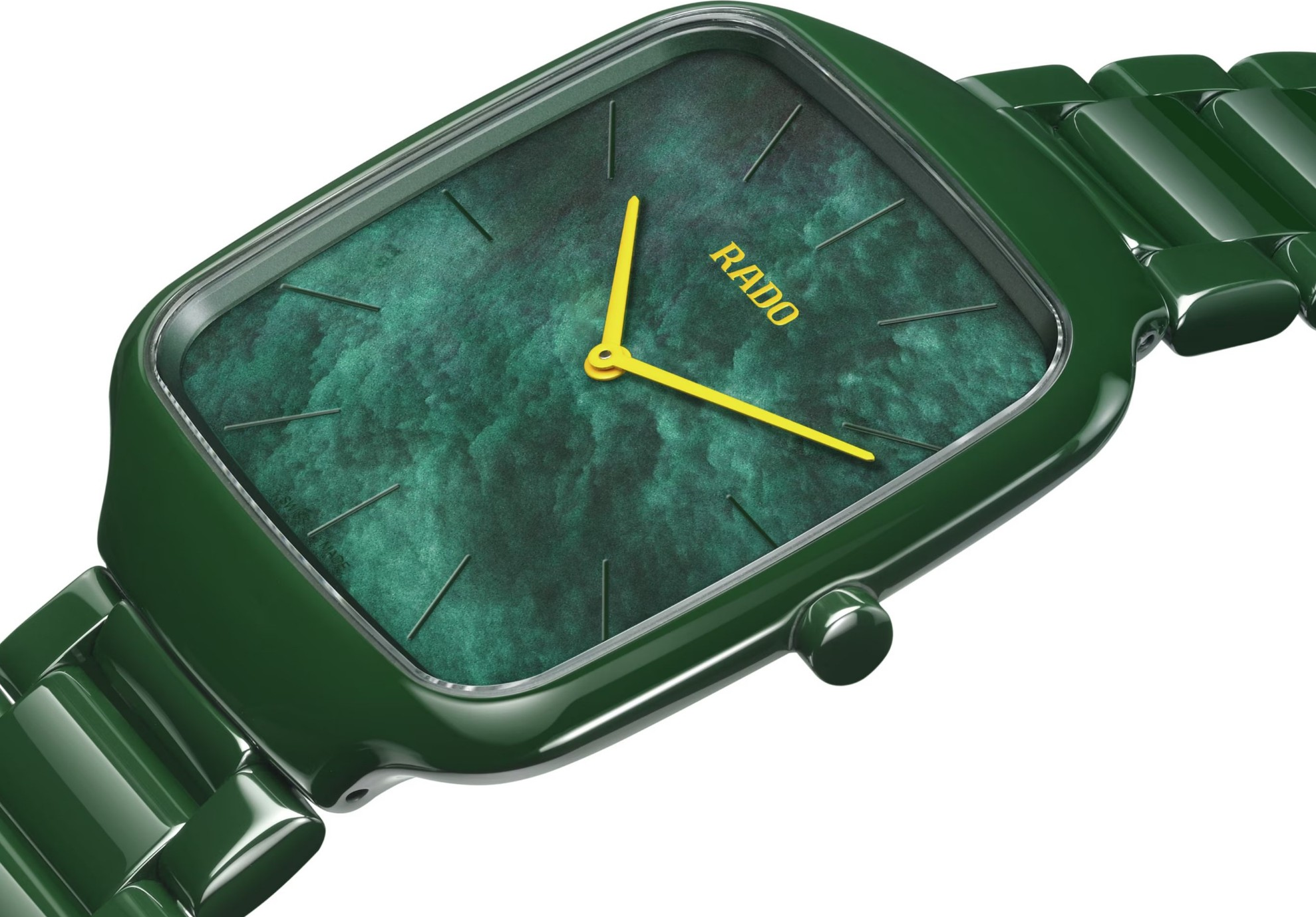 Tyto unisexové keramické hodinky v elegantním a nadčasově klasickém stylu zaujmou čistými liniemi, minimalistickým pojetím a důrazem na moderní materiály. Hranaté pouzdro o průměru 37 mm je vyrobeno z vysoce odolné keramiky v zeleném provedení, která je lehká, příjemná na nošení a zároveň mimořádně odolná proti poškrábání. Díky velmi nízké tloušťce pouzdra pouhých 5 mm působí hodinky mimořádně subtilně a elegantně, a bez problémů se vejdou pod manžetu košile.