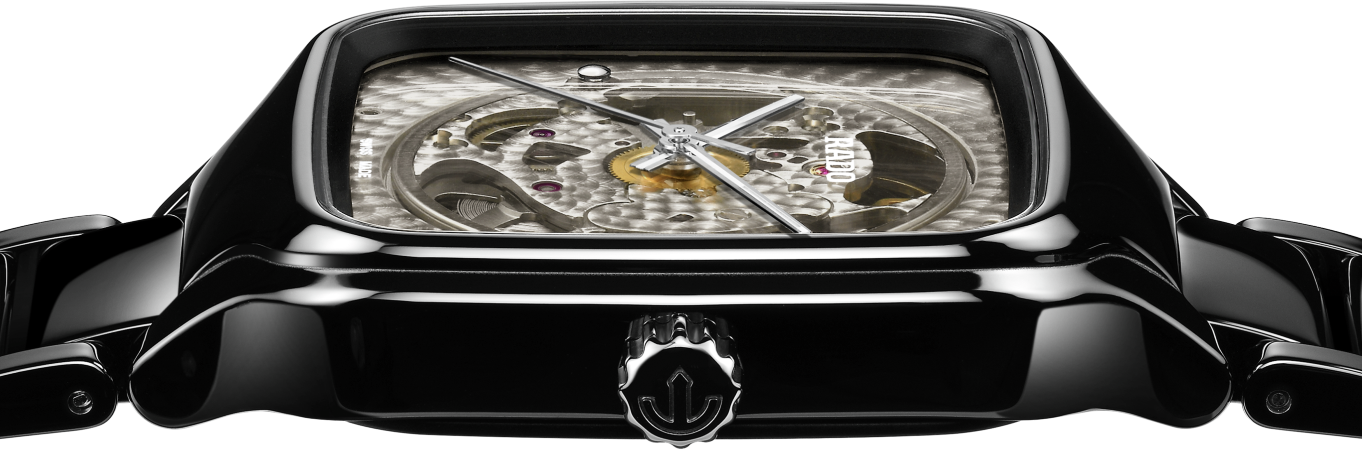 keramikou. Rado zkrátka patří mezi špičku ve výrobě high-tech materiálů.Automatický strojek švýcarské výroby Rado Caliber R734 disponuje s úžasnou