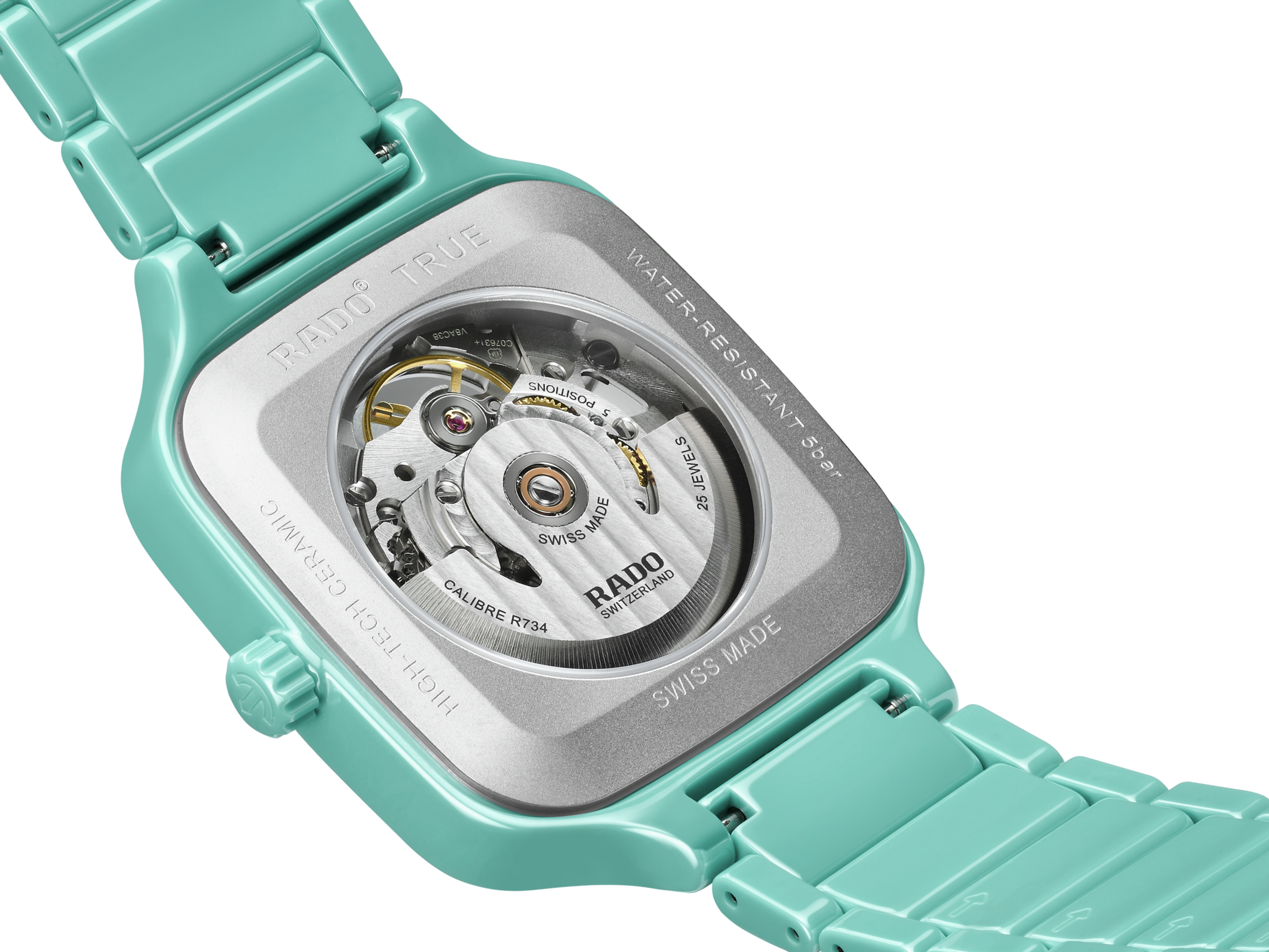 keramikou. Rado zkrátka patří mezi špičku ve výrobě high-tech materiálů.Automatický strojek švýcarské výroby Rado Caliber R734 disponuje s úžasnou