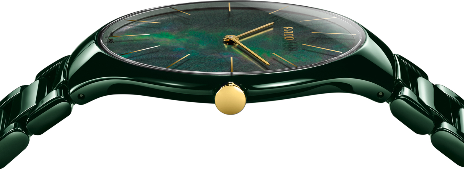 teplotě těla a tím zvyšuje komfort v podobě velmi příjemného nošení.V roce 1990 představilo Rado nové pouzdro z keramiky a safírového skla. Toto