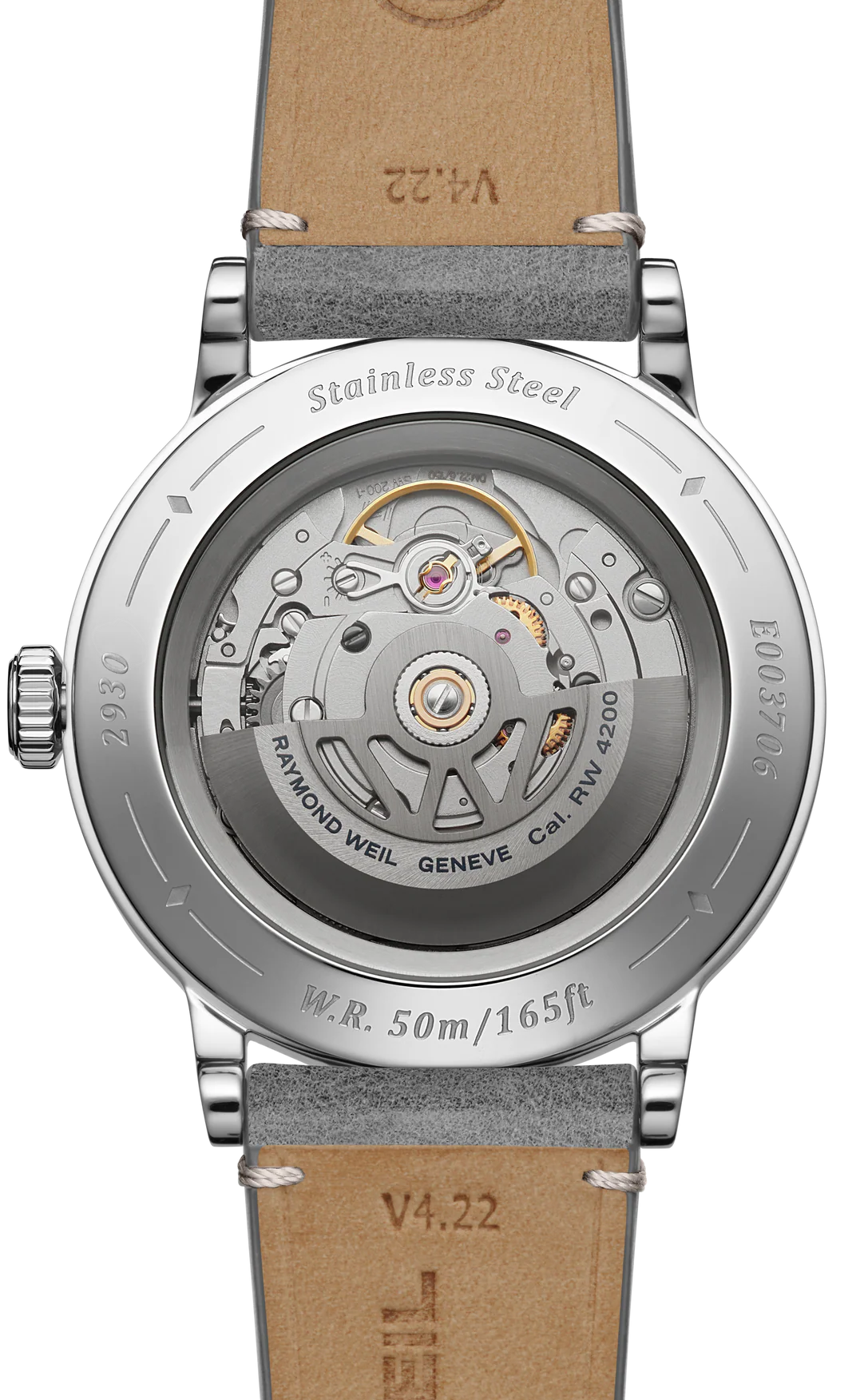 • Funkce a popis:Čas, strojek Swiss Raymond Weil RW4251 = rezerva chodu 41 hodin, 26 kamenových uložení, polokmity setrvačky 28.800/h (4 Hz)  = diference 2 - 4 vteřiny denně,  automatický nátah (hodinky se natahují pohybem ruky) + ruční nátah (hodinky lze natáhnout/dotáhnout i ručně korunkou), oboustranný nátah rotoru, korunka pouzdra s logem RW (Raymond Weil), průhledné zadní víčko pro náhled na strojek