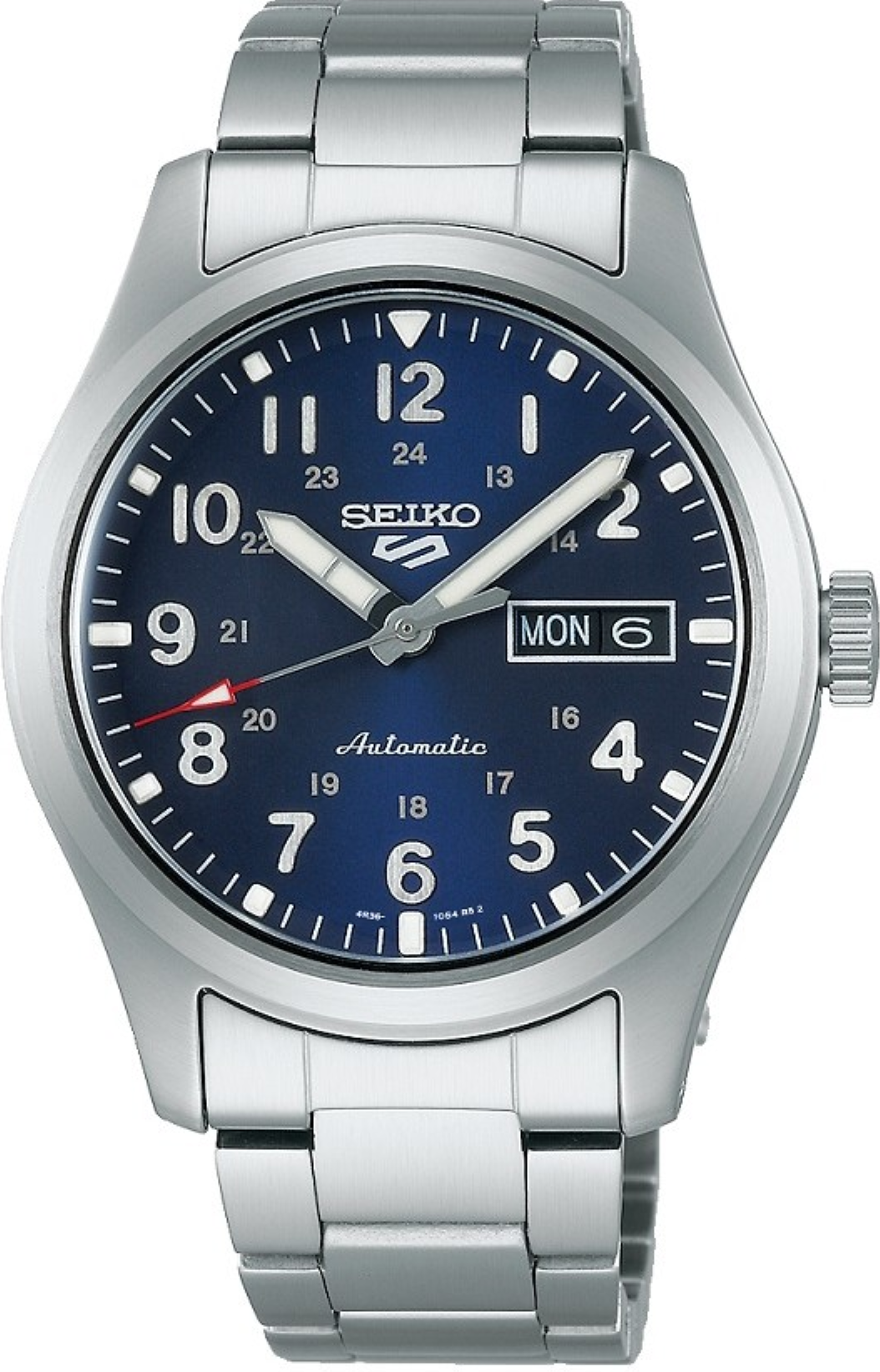 • Funkce a popis:Čas, datum, den v týdnu, strojek vlastní výroby (in-house) automatic Japan Seiko Caliber 4R36 (24 kamenových uložení), rezerva chodu 41 hodin, polokmity setrvačky 21.600/h = přesnost chodu 4 - 7 vteřin denně, vlásek setrvačky - Seiko Spron 510 (odolný vůči otřesům a běžnému magnetickému poli pro stabilní přesnost chodu), materiál hnací pružiny (pera) - Seiko Spron 510 (pero je antimagnetické a po celou dobu své životnosti zachovává stejnou tvrdost a pružnost, což je důležité pro trvalou a konstantní přesnost chodu strojku), hodinky jsou odolné magnetismu o síle 4.800 A/M (60 Gaussům = 5 cm, pro představu - mobilní telefon vzdálen od hodinek 5 cm zasahuje hodinky magnetickým polem o síle 400 A/M a přiblížíme-li hodinky na dotek k telefonu, hodinky zasáhne magnetické pole silou až 16.000 A/M), automatický nátah (hodinky se natahují pohybem ruky) + ruční nátah (hodinky lze natáhnout/dotáhnout i ručně korunkou), rotor samonátahu má oboustranný nátah, regulace přesnosti - ETACHRON (minimální vůle vlásku v zámečku regulační ručky zajišťuje vysokou přesnost hodinek), nárazuvzdor setrvačky Diashock (Seiko) = hodinky jsou již slušně odolné vůči nárazu (otřesu) či pádu, hodinky disponují funkcí strojku "Hacking" (při vytažení korunky do nejzažší polohy pro řízení ručiček se zastavuje vteřinová ručička), ručičky a indexy jsou opatřeny svítící vrstvou LumiBrite (nový druh luminiscenční barvy - od. r. 1995 - který svítí jasněji a déle než běžná luminiscenční vrstva a svítivost slábne v noci velmi pomalu), hodinky splňují normu antimagnetičnosti ISO 764