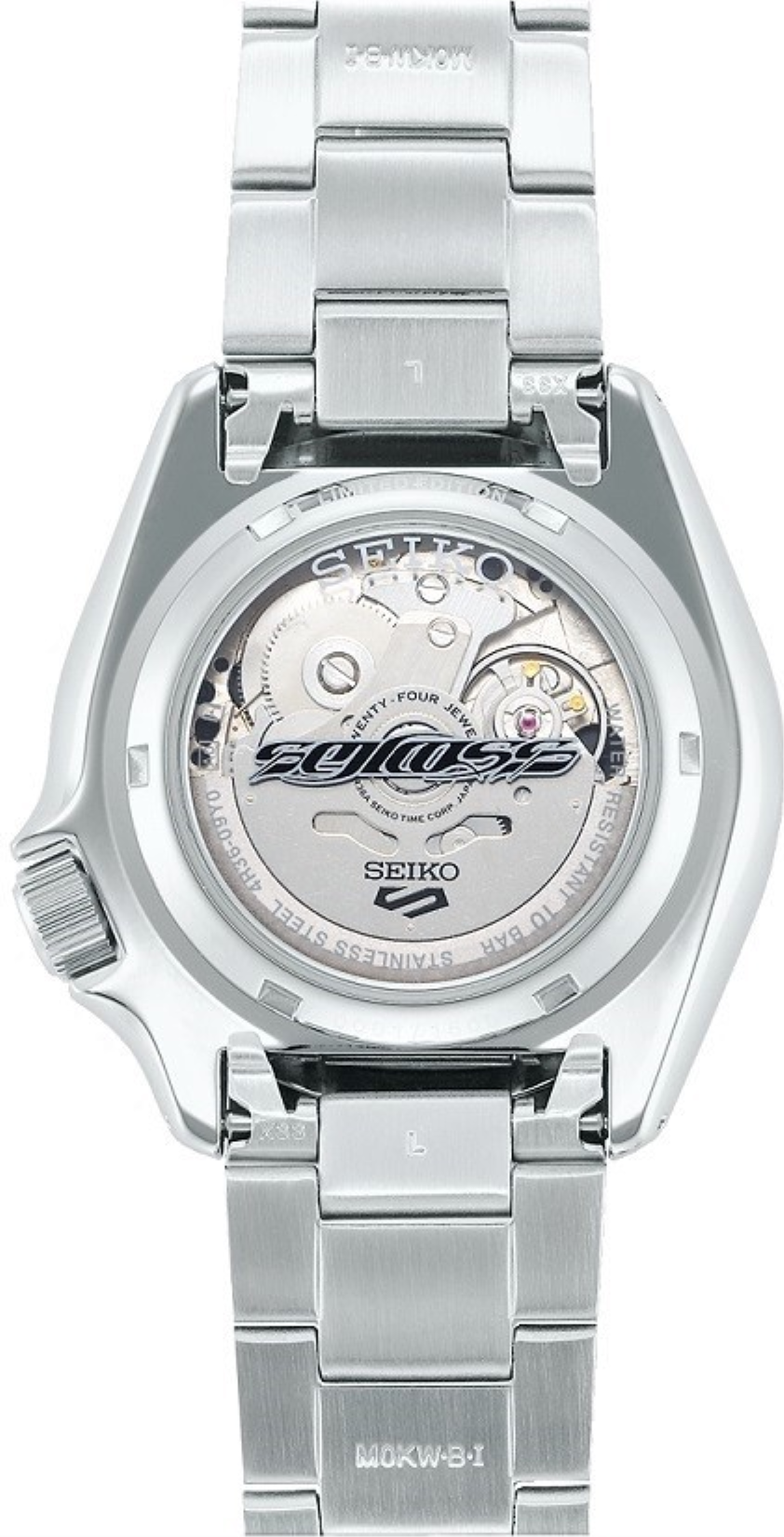 • Funkce a popis:Čas, datum, den v týdnu, strojek vlastní výroby (in-house) automatic Japan Seiko Caliber 4R36 (24 kamenových uložení), rezerva chodu 41 hodin, polokmity setrvačky 21.600/h = přesnost chodu 4 - 7 vteřin denně, vlásek setrvačky - Seiko Spron 510 (odolný vůči otřesům a běžnému magnetickému poli pro stabilní přesnost chodu), materiál hnací pružiny (pera) - Seiko Spron 510 (pero je antimagnetické a po celou dobu své životnosti zachovává stejnou tvrdost a pružnost, což je důležité pro trvalou a konstantní přesnost chodu strojku), hodinky jsou odolné magnetismu o síle 4.800 A/M (60 Gaussům = 5 cm, pro představu - mobilní telefon vzdálen od hodinek 5 cm zasahuje hodinky magnetickým polem o síle 400 A/M a přiblížíme-li hodinky na dotek k telefonu, hodinky zasáhne magnetické pole silou až 16.000 A/M), automatický nátah (hodinky se natahují pohybem ruky) + ruční nátah (hodinky lze natáhnout/dotáhnout i ručně korunkou), rotor samonátahu má oboustranný nátah, regulace přesnosti - ETACHRON (minimální vůle vlásku v zámečku regulační ručky zajišťuje vysokou přesnost hodinek), nárazuvzdor setrvačky Diashock (Seiko) = hodinky jsou již slušně odolné vůči nárazu (otřesu) či pádu, hodinky disponují funkcí strojku "Hacking" (při vytažení korunky do nejzažší polohy pro řízení ručiček se zastavuje vteřinová ručička), hodinky splňují normu antimagnetičnosti ISO 764