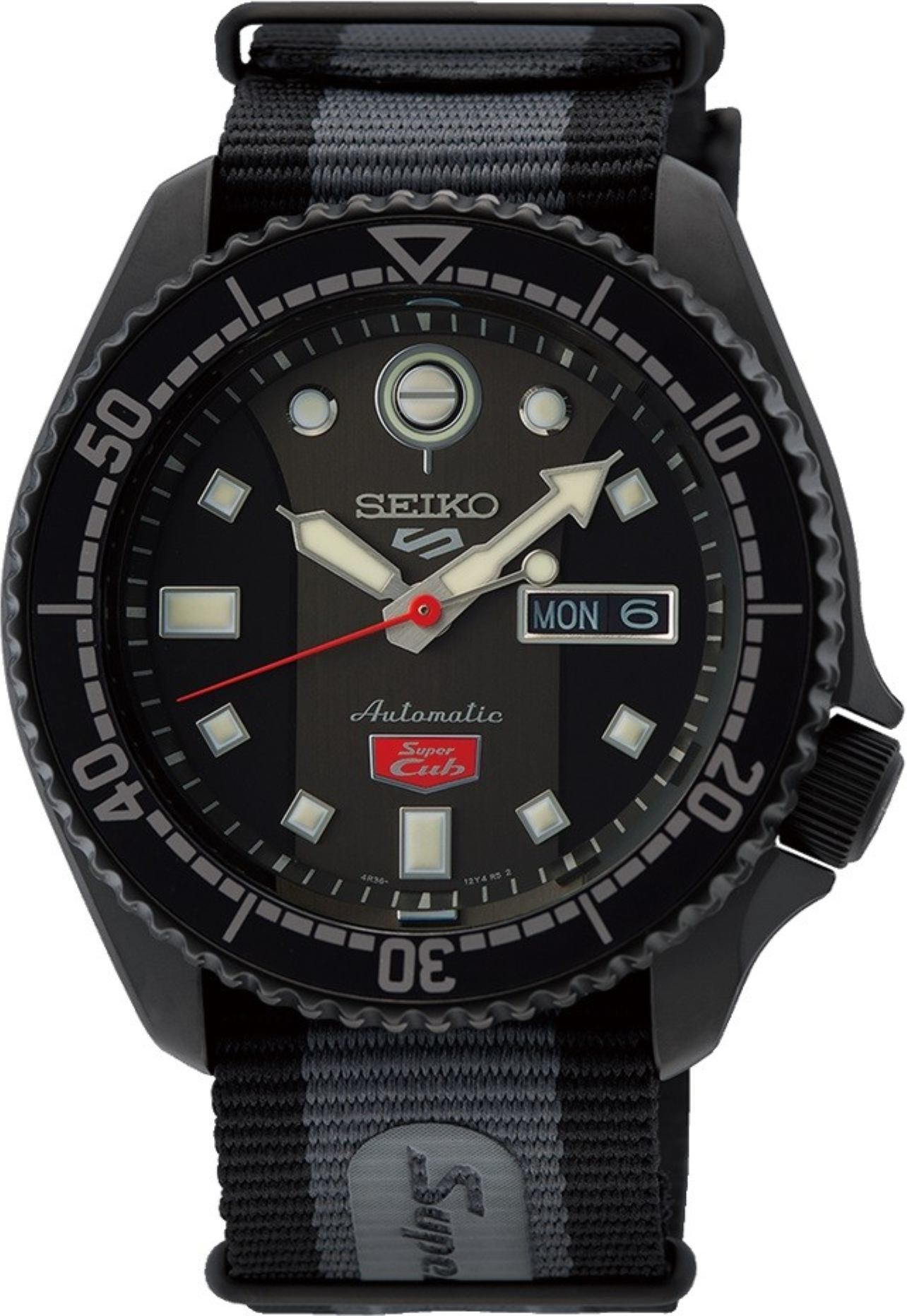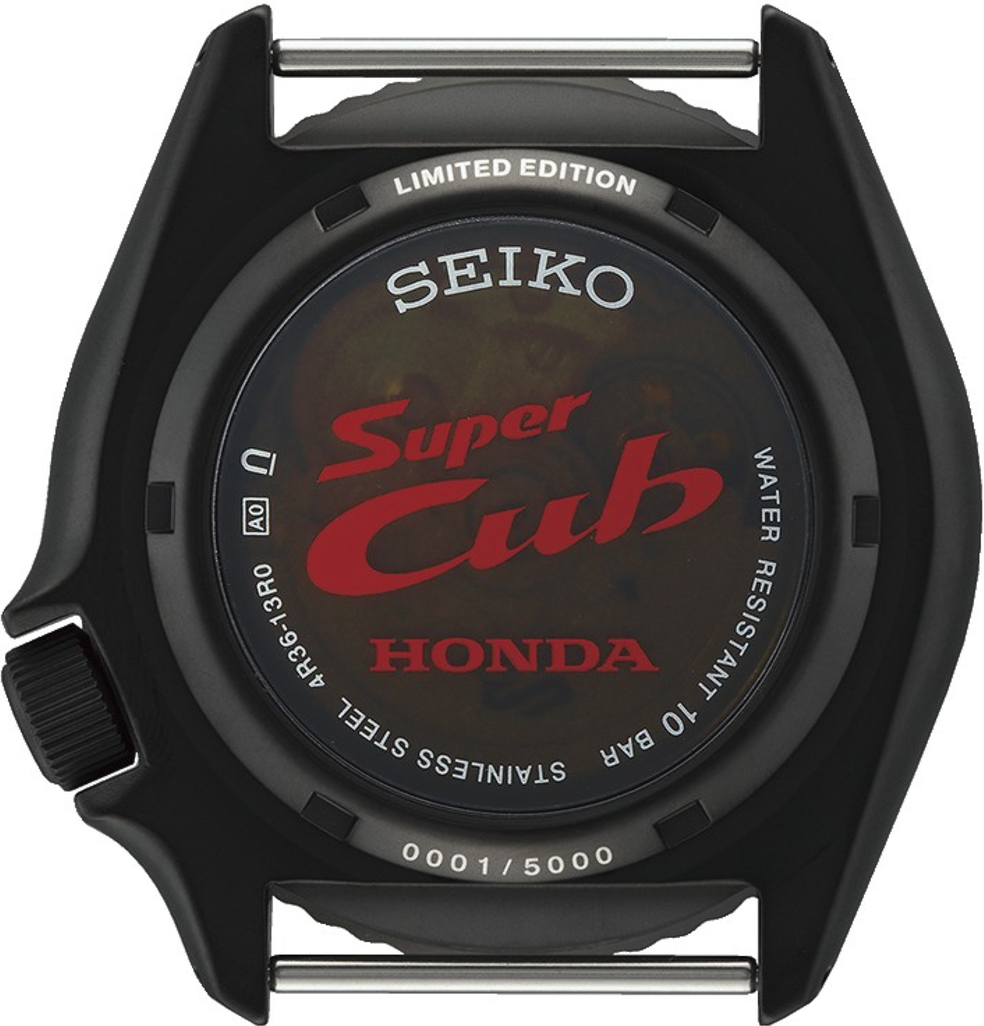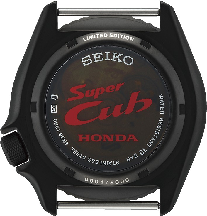 Robustní hodinky Seiko 5 Sports SRPJ75K1 SKX Sense Style Super Cub Limited Edition poháněné automatickým strojkem s kalibrem 4R36 s rezervou chodu 41 hodin jsou vytvořené ve spolupráci se značkou Honda. Inspirací jim byl skútr Honda Super Cub 125. Honda Super Cub se řadí mezi nejprodávanější motocykl v historii.