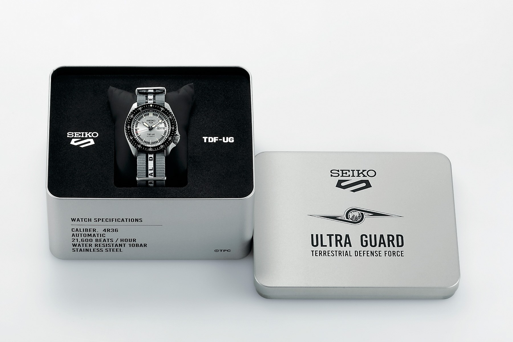 Robustní hodinky Seiko 5 Sports SRPJ79K1 SKX Sense Style 55th Anniversary Ultraseven Limited Edition poháněné automatickým strojkem s kalibrem 4R36 s rezervou chodu 41 hodin  jsou vytvořené př příležitosti výročí 55 let japonského sci-fi televizního seriálu Ultraseven. ...