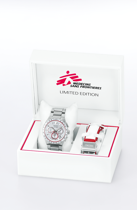 Limitovaná edice Seiko Astron SSH133J1 Médecins Sans Frontières Collaboration je vytvořena ve spolupráci s Lékaři bez hranic. Hodinky jsou proto vyvedené s prvky v typické barvě Lékařů bez hranic - červené. Červená obzvláště vyniká v kombinaci se stříbřitým číselníkem a bílou keramickou lunetou, mnohé potěší červenobílý silikonový řemínek, který je součástí balení. Na spolupráci odkazuje také speciální dýnko značené  ...