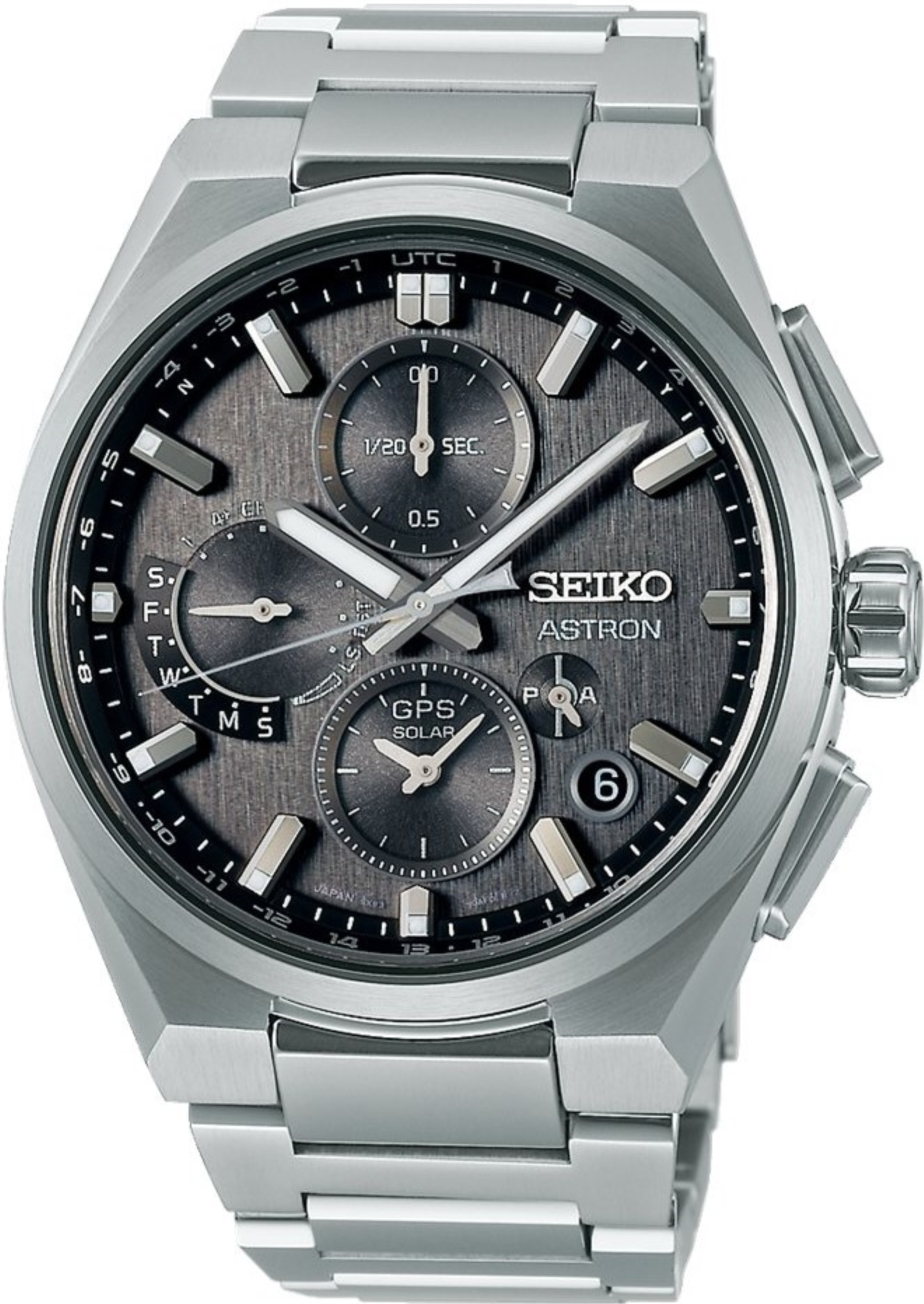 Seiko Astron: první solární hodinky s GPS na světě – poháněné světelnou energií, automaticky přizpůsobené vašemu přesnému času pomocí nejnovější technologie GPS. Tyto hodinky jsou pojmenovány „Solidity“ pro pokračující význam jejich technologického designu.