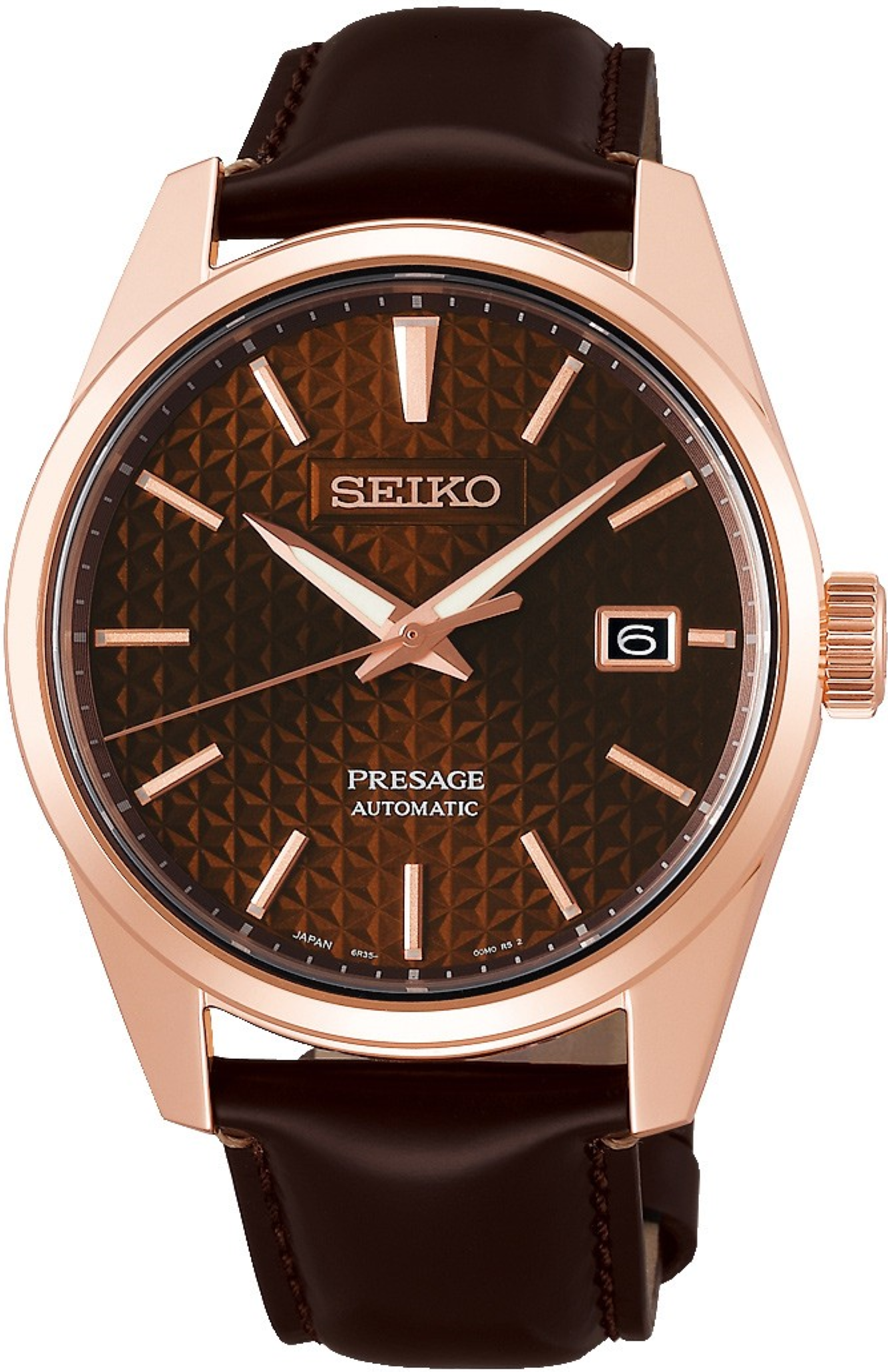 • Funkce a popis:Čas, datum, strojek vlastní výroby (in-house) automatic Japan Seiko Caliber 6R35 (24 kamenových uložení), rezerva chodu 70 hodin, polokmity setrvačky 21.600/h = přesnost chodu 3 - 6 vteřin denně, regulace přesnosti - ETACHRON (minimální vůle vlásku v zámečku regulační ručky zajišťuje vysokou přesnost hodinek), vlásek setrvačky - Seiko Spron 510 (odolný vůči otřesům a běžnému magnetickému poli pro stabilní přesnost chodu), materiál hnací pružiny (pera) - Seiko Spron 510 (pero je antimagnetické a po celou dobu své životnosti zachovává stejnou tvrdost a pružnost, což je důležité pro trvalou a konstantní přesnost chodu strojku), hodinky jsou odolné magnetismu o síle 4.800 A/M (60 Gaussům = 5 cm, pro představu - mobilní telefon vzdálen od hodinek 5 cm zasahuje hodinky magnetickým polem o síle 400 A/M a přiblížíme-li hodinky na dotek k telefonu, hodinky zasáhne magnetické pole silou až 16.000 A/M), automatický nátah (hodinky se natahují pohybem ruky) + ruční nátah (hodinky lze natáhnout/dotáhnout i ručně korunkou, rotor samonátahu má oboustranný nátah, nárazuvzdor setrvačky Diashock (Seiko) = hodinky jsou již slušně odolné vůči nárazu (otřesu) či pádu, hodinky disponují funkcí strojku "Hacking" (při vytažení korunky do nejzažší polohy pro řízení ručiček se zastavuje vteřinová ručička), ručičky a indexy jsou opatřeny svítící vrstvou LumiBrite (nový druh luminiscenční barvy - od. r. 1995 - který svítí jasněji a déle než běžná luminiscenční vrstva), hodinky splňují normu antimagnetičnosti ISO 764