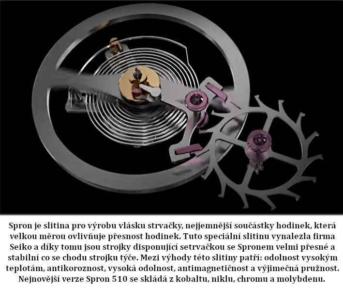 generační, v mnoha případech můžeme mluvit i o  investici.Spron je slitina pro výrobu vlásku strvačky, nejjemnější součástky hodinek, která velkou měrou ovlivňuje přesnost hodinek. Tuto speciální slitinu vynalezla firma Seiko a díky tomu jsou strojky disponující setrvačkou se Spronem velmi přesné a stabilní co se chodu strojku týče. Mezi výhody této slitiny patří: odolnost vysokým teplotám, antikoroznost, vysoká odolnost, antimagnetičnost a výjimečná pružnost. Nejnovější verze Spron 510 se skládá z kobaltu, niklu, chromu a molybdenuDiashock je jeden ze systémů v hodinářské terminologii souhrnně nazvaným