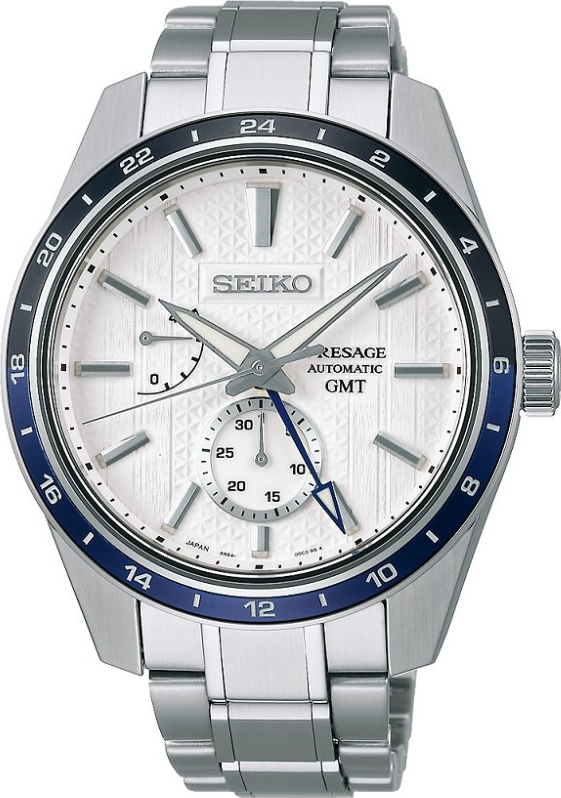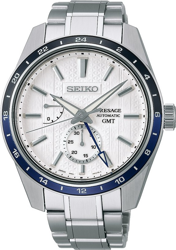 • Funkce a popis:Čas, datum, GMT, 24hodinová ručička, funkce úpravy časového rozdílu spojená s kalendářem, indikátor rezervy chodu, strojek vlastní výroby (in-house) automatic Japan Seiko Caliber 6R64 (29 kamenových uložení), rezerva chodu 45 hodin, polokmity setrvačky 21.600/h = přesnost chodu 4 - 7 vteřin denně, průhledné zadní víčko pro náhled na strojek, vlásek setrvačky - Seiko Spron 510 (odolný vůči otřesům a běžnému magnetickému poli pro stabilní přesnost chodu), hodinky jsou odolné magnetismu o síle 4.800 A/M (60 Gaussům = 5 cm, pro představu - mobilní telefon vzdálen od hodinek 5 cm zasahuje hodinky magnetickým polem o síle 400 A/M a přiblížíme-li hodinky na dotek k telefonu, hodinky zasáhne magnetické pole silou až 16.000 A/M), automatický nátah (hodinky se natahují pohybem ruky) + ruční nátah (hodinky lze natáhnout/dotáhnout i ručně korunkou), rotor samonátahu má oboustranný nátah, regulace přesnosti - ETACHRON (minimální vůle vlásku v zámečku regulační ručky zajišťuje vysokou přesnost hodinek), nárazuvzdor setrvačky Diashock (hodinky jsou částečně odolné vůči nárazu či pádu), hodinky disponují funkcí strojku "Hacking" (při vytažení korunky do nejzažší polohy pro řízení ručiček se zastavuje vteřinová ručička), hodinky splňují normu antimagnetičnosti ISO 764