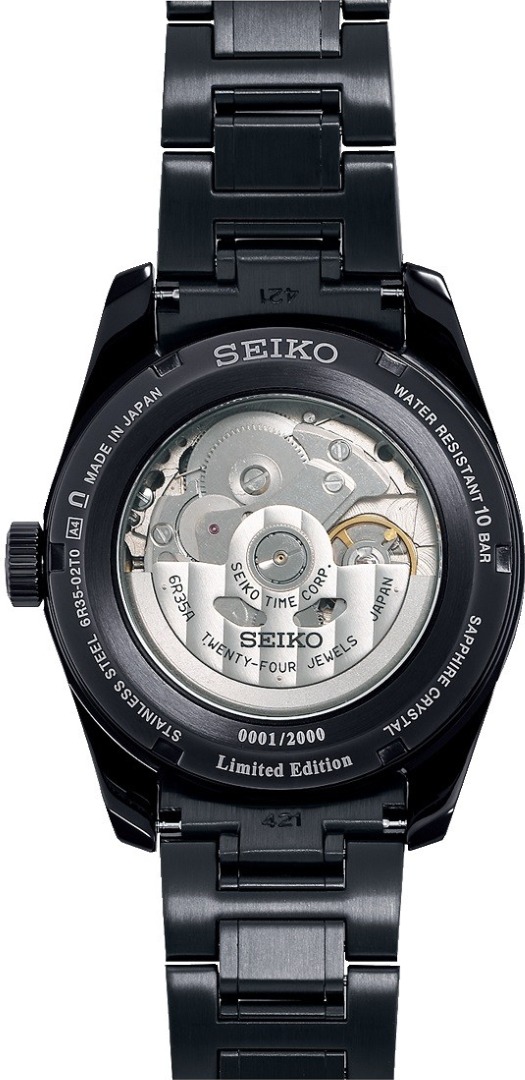 • Funkce a popis:Čas, datum, strojek vlastní výroby (in-house) automatic Japan Seiko Caliber 6R35 (24 kamenových uložení), rezerva chodu 70 hodin, polokmity setrvačky 21.600/h = přesnost chodu 3 - 6 vteřin denně, regulace přesnosti - ETACHRON (minimální vůle vlásku v zámečku regulační ručky zajišťuje vysokou přesnost hodinek), vlásek setrvačky - Seiko Spron 510 (odolný vůči otřesům a běžnému magnetickému poli pro stabilní přesnost chodu), materiál hnací pružiny (pera) - Seiko Spron 510 (pero je antimagnetické a po celou dobu své životnosti zachovává stejnou tvrdost a pružnost, což je důležité pro trvalou a konstantní přesnost chodu strojku), hodinky jsou odolné magnetismu o síle 4.800 A/M (60 Gaussům = 5 cm, pro představu - mobilní telefon vzdálen od hodinek 5 cm zasahuje hodinky magnetickým polem o síle 400 A/M a přiblížíme-li hodinky na dotek k telefonu, hodinky zasáhne magnetické pole silou až 16.000 A/M), automatický nátah (hodinky se natahují pohybem ruky) + ruční nátah (hodinky lze natáhnout/dotáhnout i ručně korunkou), rotor samonátahu má oboustranný nátah, nárazuvzdor setrvačky Diashock (Seiko) = hodinky jsou již slušně odolné vůči nárazu (otřesu) či pádu, hodinky disponují funkcí strojku "Hacking" (při vytažení korunky do nejzažší polohy pro řízení ručiček se zastavuje vteřinová ručička) , ručičky a indexy jsou opatřeny svítící vrstvou LumiBrite (nový druh luminiscenční barvy - od. r. 1995 - který svítí jasněji a déle než běžná luminiscenční vrstva), hodinky splňují normu antimagnetičnosti ISO 764