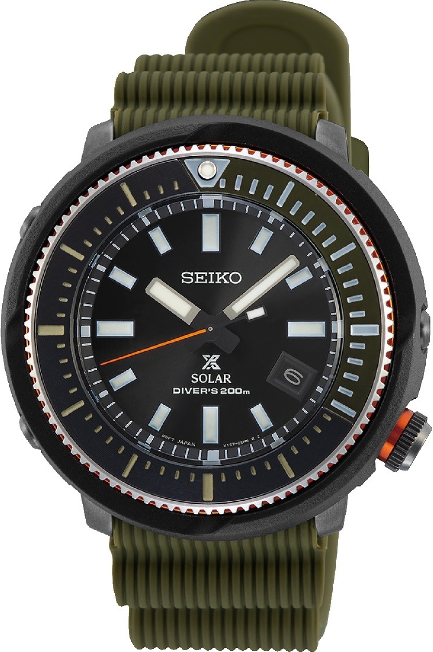 • Funkce a popis:Čas, datum, strojek V157 se solárním nabíjením a s rezervou chodu až 10 měsíců při plném nabití, hodinky disponují funkcí strojku "Hacking" (při vytažení korunky do nejzažší polohy pro řízení ručiček se zastavuje vteřinová ručička), indikace slabé baterie, ochranný věnec z tvrzeného plastu tzv. shroud, chránící otočnou lunetu (se škálou pro snadné měření doby ponoru), ručičky a indexy jsou opatřeny svítící vrstvou LumiBrite (nový druh luminiscenční barvy - od. r. 1995 - který svítí jasněji a déle než běžná luminiscenční vrstva)