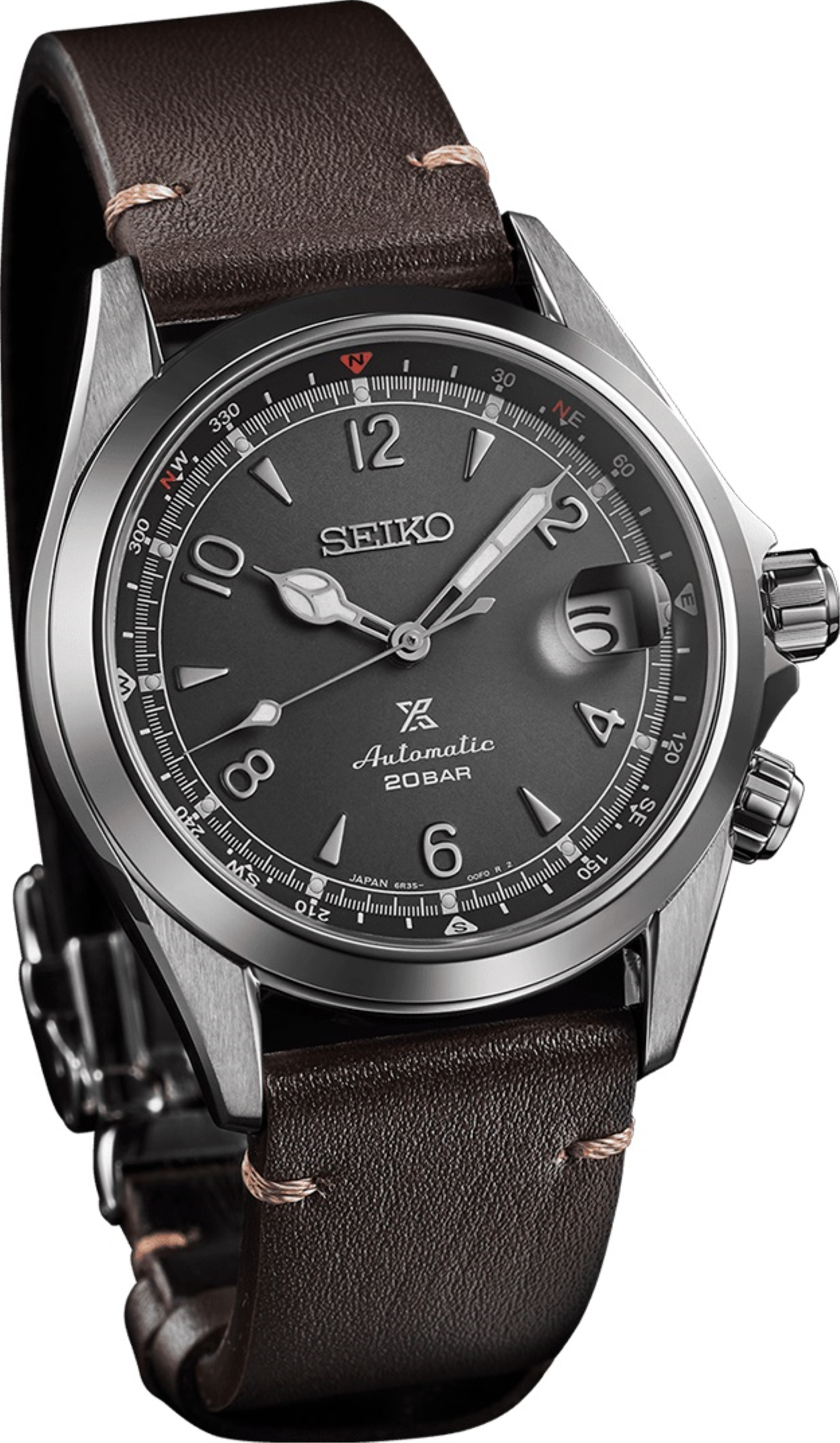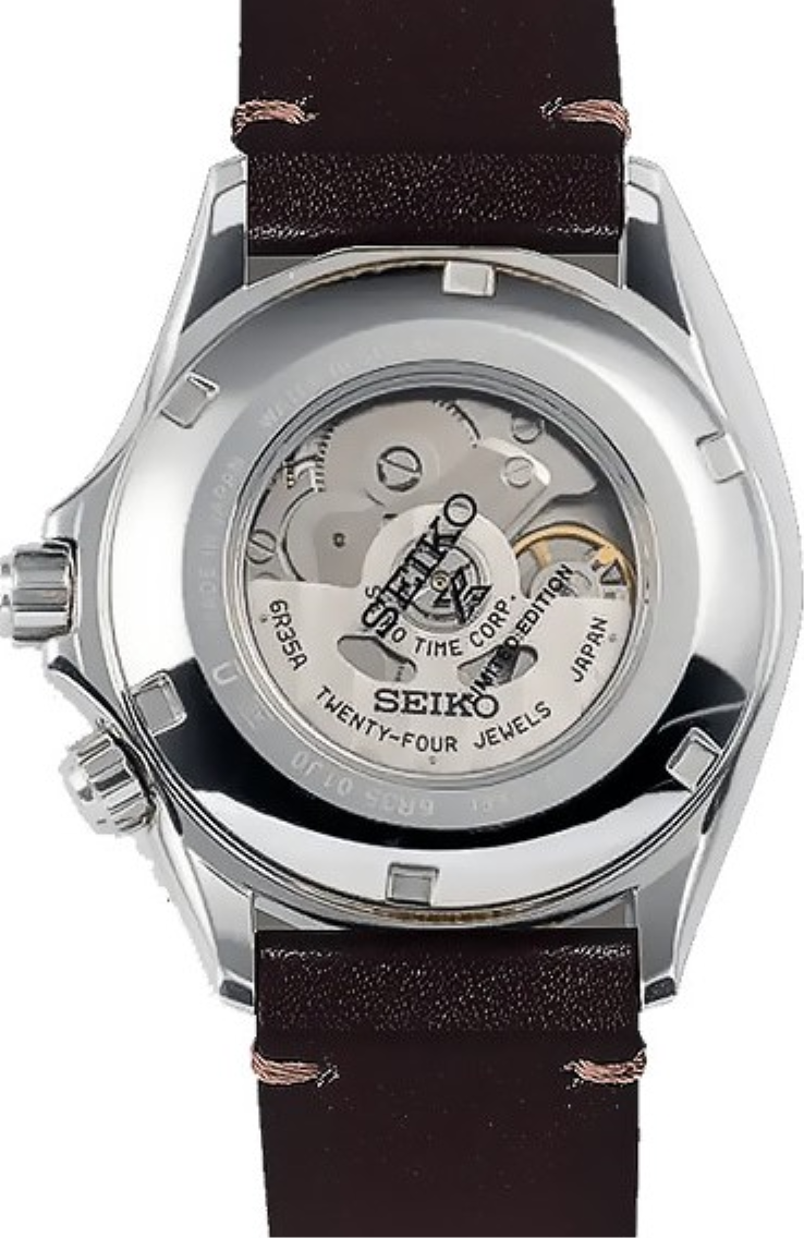 • Funkce a popis:Čas, datum s lupou, kompasová luneta, strojek vlastní výroby (in-house) automatic Japan Seiko Caliber 6R35 (24 kamenových uložení), rezerva chodu 70 hodin, polokmity setrvačky 21.600/h = přesnost chodu 3 - 6 vteřin denně, regulace přesnosti - ETACHRON (minimální vůle vlásku v zámečku regulační ručky zajišťuje vysokou přesnost hodinek), vlásek setrvačky - Seiko Spron 510 (odolný vůči otřesům a běžnému magnetickému poli pro stabilní přesnost chodu), materiál hnací pružiny (pera) - Seiko Spron 510 (pero je antimagnetické a po celou dobu své životnosti zachovává stejnou tvrdost a pružnost, což je důležité pro trvalou a konstantní přesnost chodu strojku), hodinky jsou odolné magnetismu o síle 4.800 A/M (60 Gaussům = 5 cm, pro představu - mobilní telefon vzdálen od hodinek 5 cm zasahuje hodinky magnetickým polem o síle 400 A/M a přiblížíme-li hodinky na dotek k telefonu, hodinky zasáhne magnetické pole silou až 16.000 A/M), automatický nátah (hodinky se natahují pohybem ruky) + ruční nátah (hodinky lze natáhnout/dotáhnout i ručně korunkou, rotor samonátahu má oboustranný nátah, nárazuvzdor setrvačky Diashock (Seiko) = hodinky jsou již slušně odolné vůči nárazu (otřesu) či pádu, hodinky disponují funkcí strojku "Hacking" (při vytažení korunky do nejzažší polohy pro řízení ručiček se zastavuje vteřinová ručička), ručičky a indexy jsou opatřeny svítící vrstvou LumiBrite (nový druh luminiscenční barvy - od. r. 1995 - který svítí jasněji a déle než běžná luminiscenční vrstva), hodinky splňují normu antimagnetičnosti ISO 764