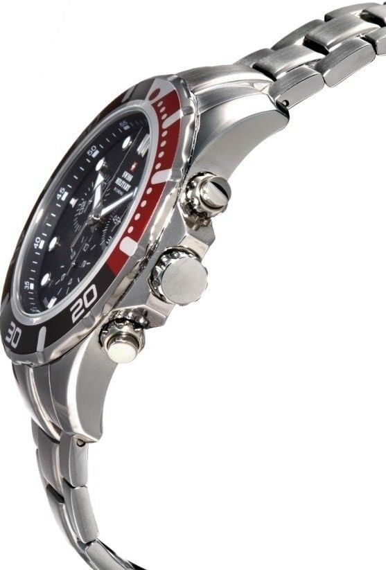 • Funkce a popis:Čas, datum, chronograf = stopky, svítící ručky a indexy, jednosměrně otočná luneta